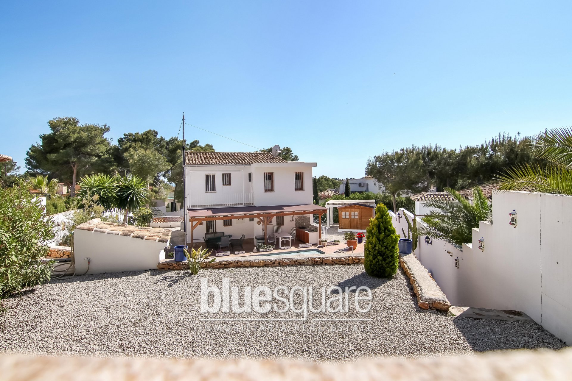 This large plot with 2 villas is situated walking distance of the famous Playa la Fustera and is ideal to rent out for holidaymakers. The largest house consists of 3 bedrooms and 2 bathrooms, a completely new fully equipped kitchen and spacious living/dining area. Outside there is a 8×4 salt water heated pool, an outside kitchen and lovely terrace, a wooden storage house, room for 3 cars on the plot, 1 carport. The house has a wood burner, or gas heated and air conditioning in all rooms (partially renovated in 2011). The smaller house consists of 2 bedrooms and a bathroom, American fully equipped kitchen, large living/dining room and a lovely terrace barbecue area. Air conditioning in the bedrooms.