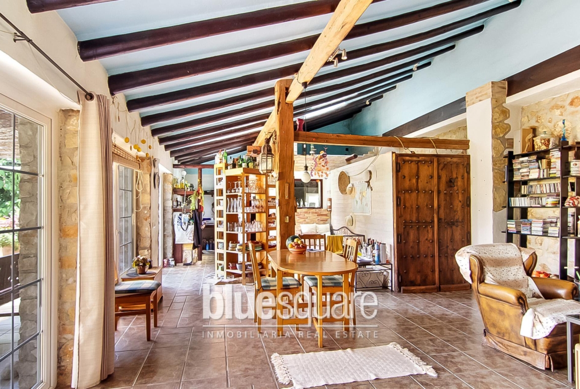 This semi-detached finca is situated in the countryside between Benissa and Senija. It has a spacious garden with room for a swimming pool and is on a plot of land of 2500m2. The house consists of an open living and dining area with kitchen and bedroom and a separate bathroom. Further there are 2 other rooms that can be used as bedrooms or office space. Upstairs there is another bedroom. Outside there is a separate apartment with a bedroom and a bathroom. It benefits from a sauna and outside kitchen with BBQ, separate toilet and shower. On the plot there are 2 garages and plenty of storage room.
