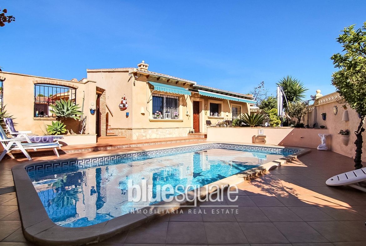 This very private and well looked after villa is located in Alfaz del Pi area. It is one level building and it consists of 3 double bedrooms, 2 bathrooms, separate kitchen and 2 living rooms. Main living/dining room has a nice fireplace. Villa benefits from well maintained outside spaces. From the roof terrace you can enjoy a beautiful view of the countryside and a distant sea view. Also there is a garage for one car.