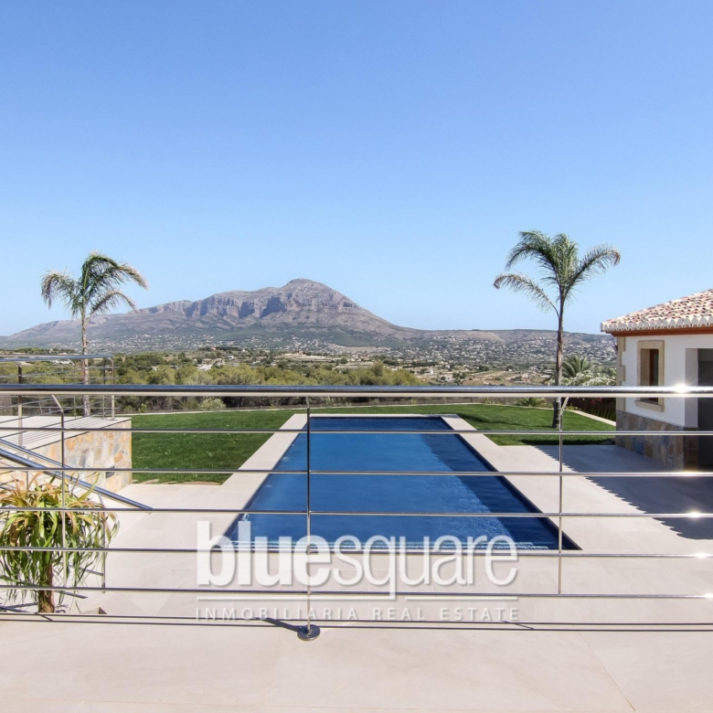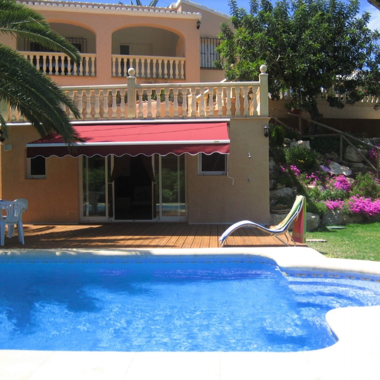 Large villa within walking distance to the town and Calpe’s fascinating beaches. This villa is south facing and comprises of 4 bedrooms, 3 bathrooms, large living/dining room, independent kitchen with laundry room and cellar. Separate living room with stone fire place that looks out onto the 2 car carport, parking for 2 more cars, swimming pool, mature gardens and spacious terraces with BBQ and sunbathing areas