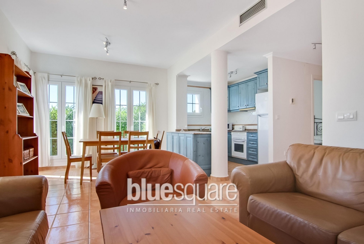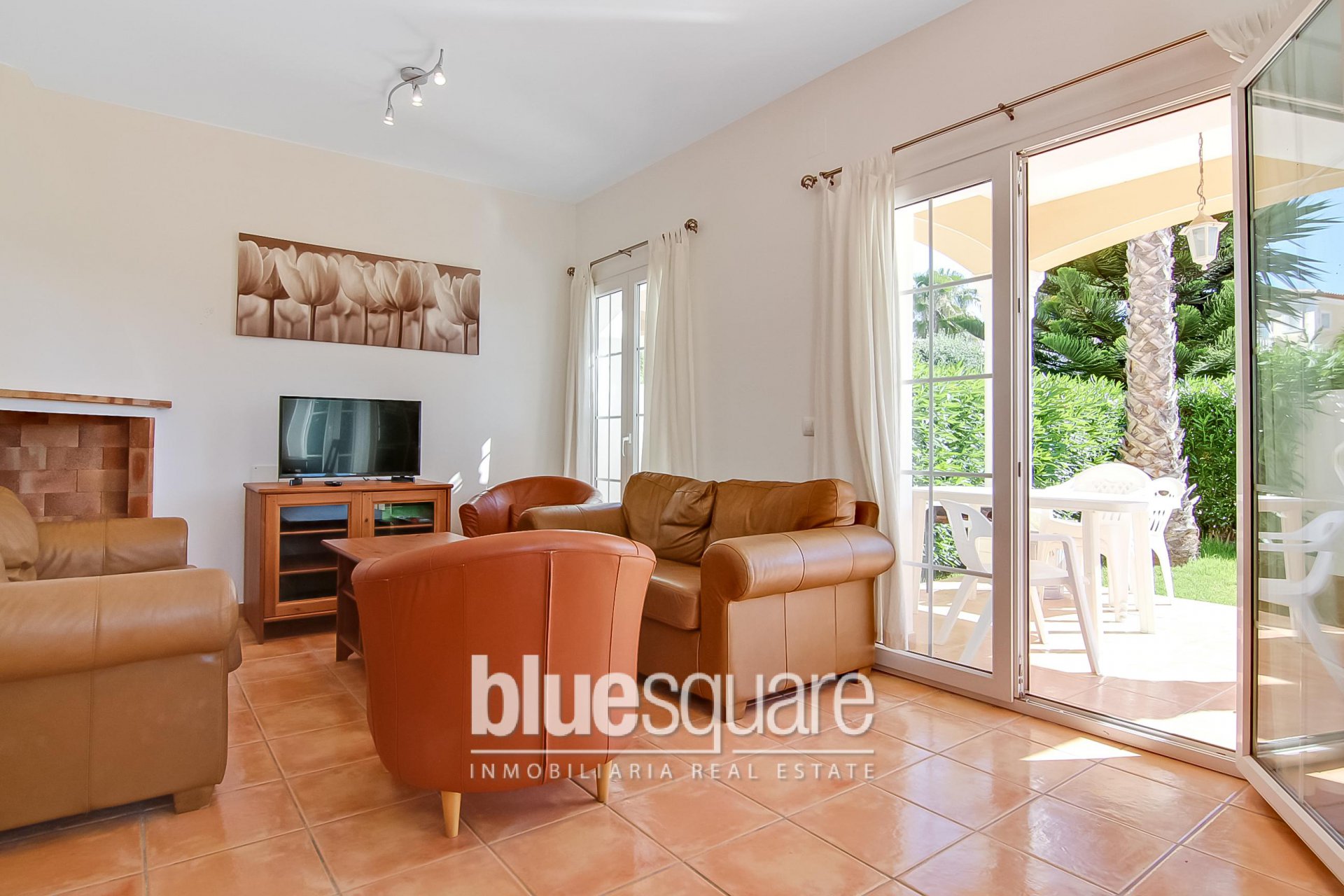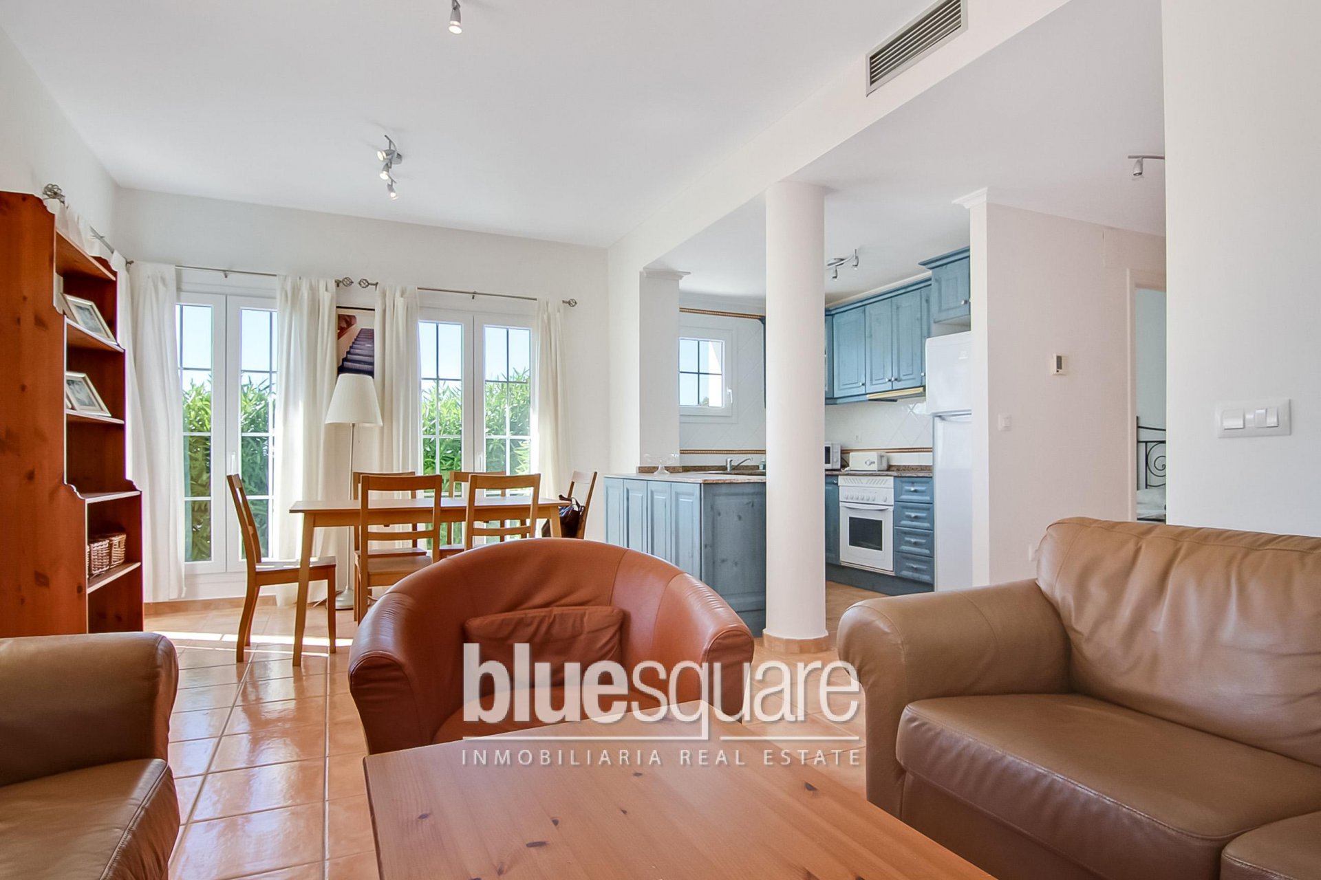 This stylish and spacious semi-detached house is only just 2 km from the town, beaches and all the amenities. Great layout, spacious and private with 2 bedrooms, 2 bathrooms (one en-suite) and guest toilet. Open plan kitchen looks onto the living dining area with chimney fireplace that opens out onto the private terrace and garden. The bedrooms also look onto a large terrace that benefits from views of the communal swimming pool & tropical gardens. Ample storage, utility area, barbeque area and parking in a gated & very private complex.