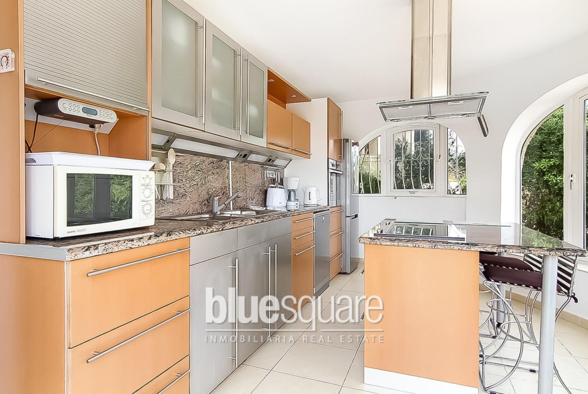 Great villa with amazing views over Calpe town, beaches and mountains. The house has recently been fully renovated. The property consists of 3 bedrooms, 2 bathrooms, fully equipped kitchen and 2 living rooms. There’s a separate living space on the ground floor with 1 big bedroom, 1 bathroom and kitchen/dining room. The house has several terraces, 1 with private swimming pool and BBQ. Viewings are highly recommended!