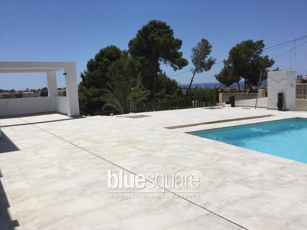 Modern luxury villa with views to the sea and the Penon de Ifach built with luxury qualities in one of the best areas of the Costa Blanca, 1.9 km from the beach of la Fustera, on the Benissa Coast, and 2 km from La Fossa beach in Calpe. The villa consists of a semi-basement floor, destined to be a garage and a local / apartment of 35 m2, ground floor and first floor. The ground floor has a bright living-dining room with direct access to the terrace, garden and pool, a modern kitchen equipped with Bosch appliances by which you access a large porch with pergola, the outdoor terrace and pool, a toilet, a bedroom with bathroom en suite and a staircase that leads to the upper floor where there are two spacious bedrooms with large wardrobes and a bathroom. From all the bedrooms, living room and kitchen you can enjoy the sea views. Outside the house there is a 10×5 swimming pool, a large terrace around the pool, a covered barbecue and a nice garden.