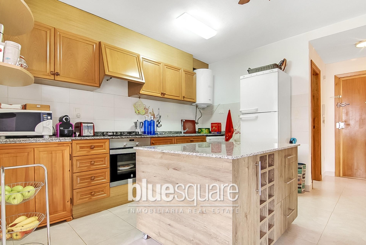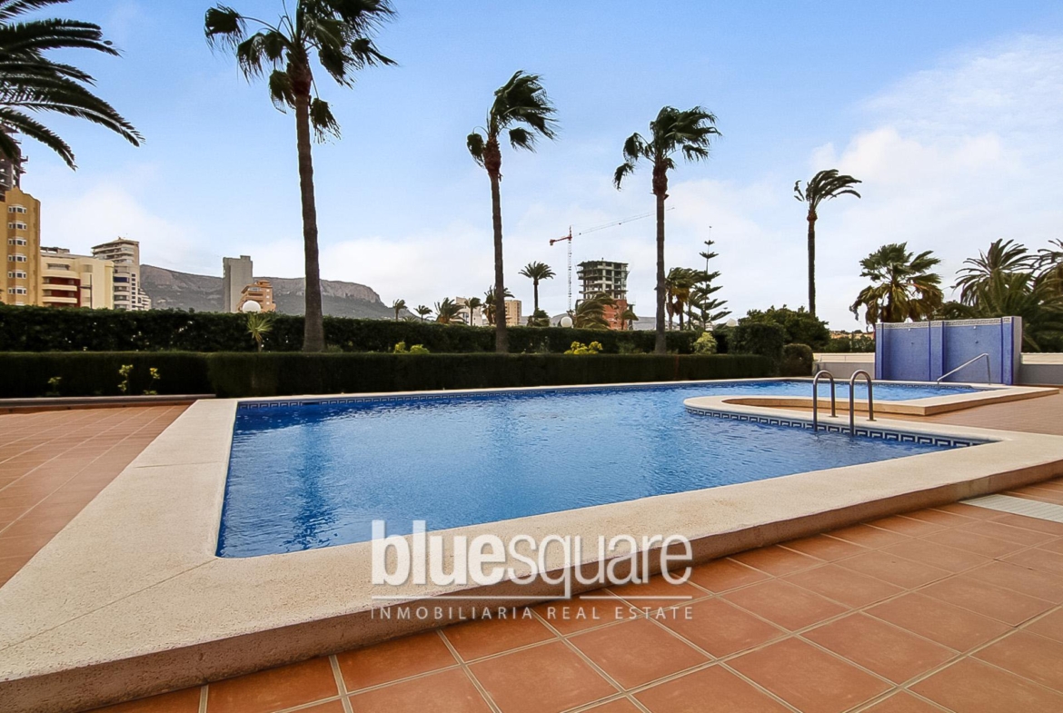 1 bedroom sea view apartment over looking a sought after location in Calpe. This apartment was a 2 bedroom but was converted into a large living area with dinning room which leads out to a terrace/balcony overlooking the sea and swimming pool. There is still the opportunity to make a second bedroom. The kitchen is open planned with plenty of space and leads off to the bedroom with ensuite. Close to all amenities and the centre of town, bars and local restaurants.