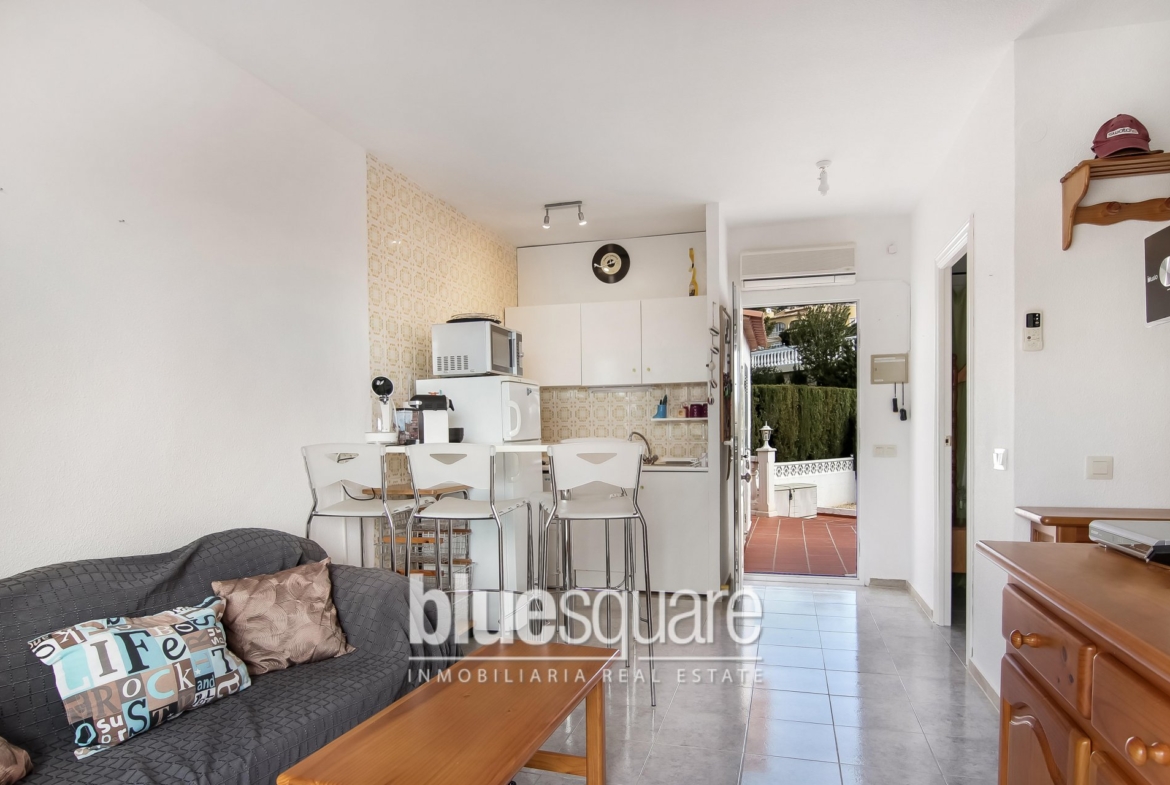 Bungalow in a quiet urbanization within walking distance from the beach and Puerto Blanco. This is an ideal holiday or rental property, close to the beach and amenities. The bungalow consists of 2 bedrooms, 1 bathroom, an open kitchen and living room and a terrace/balcony of 70m2 with nice views. There is a parking space and communal pool. All the windows are double or triple glazed with electric shutters and insect screening. The property has just been painted and refreshed. Ready to move in or to rent out.