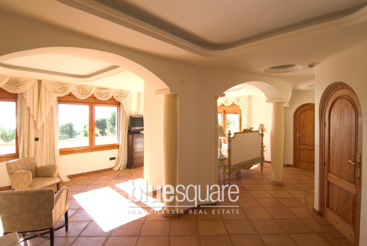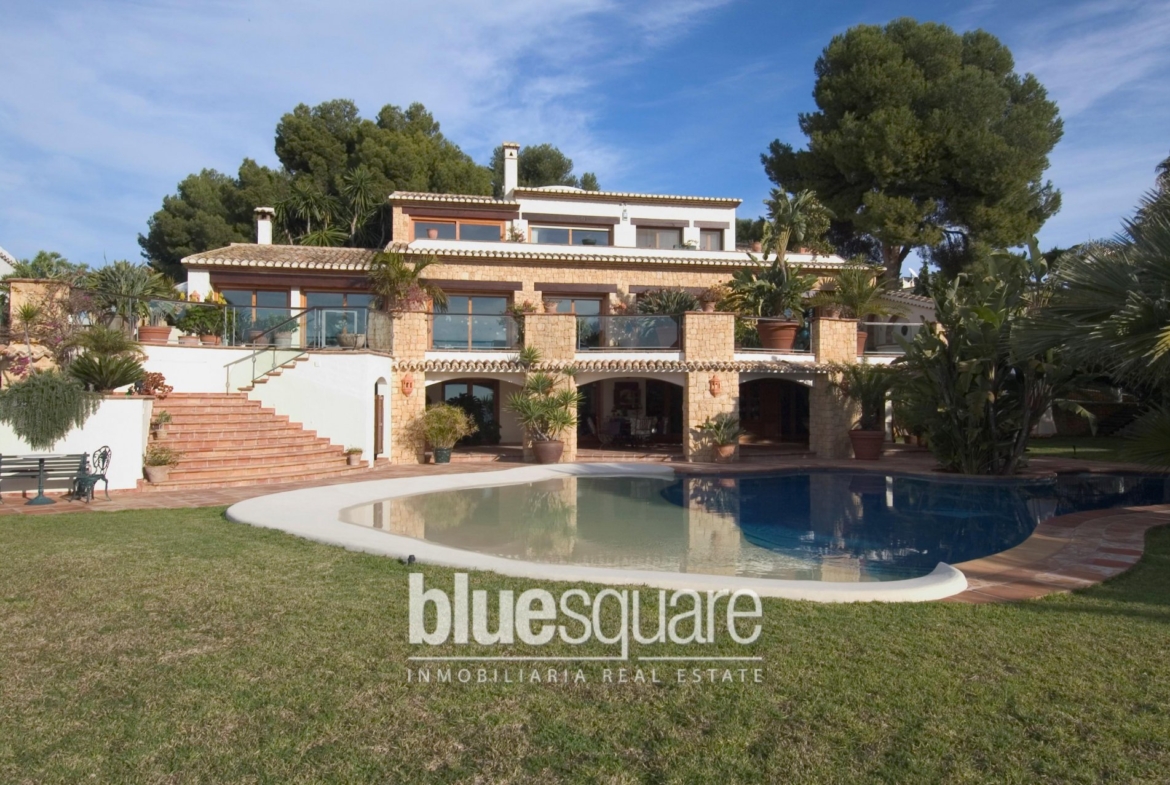 Truly a unique home. Private residence of a renown developer. A fusion of modern technology and age proven traditional Mediterranean building lore with extensive use of natural materials. Top location in the secluded development Pla del Mar next to town centre, yacht club and beaches. Quiet residential area, nevertheless within walking distance to town center, Yacht Club, shops, restaurants and Moraira and El Portet beaches. Very large south facing plot with fantastic sea and mountain views. No traffic: the property has access to two street cul de sacs.
