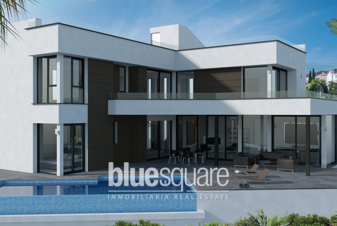 This brand new villa is now under construction and due to be completed in October 2018. Very large 560m2 build with pool and garage. Panoramic sea views towards the famous Penon rock in Calpe.
