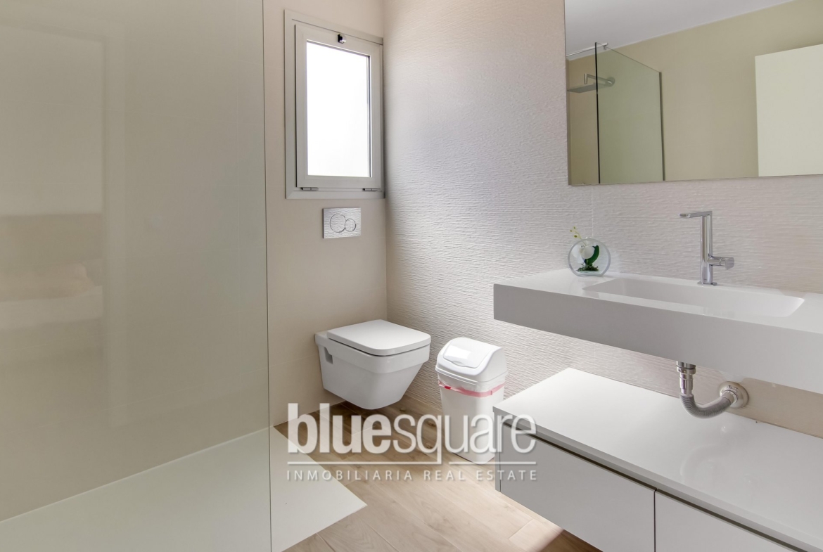 New Build Villa ´Piedra´, located in Polop just outside the popular town of La Nucia. This modern contemporary 3 Bedroom Villa is located at the foot of the mountains with panoramic views of the famous ´Lion Mountain´. The property benefits from all modern designs and is situated on a generous plot of 437 sq mtrs. There is a large outside living area, and private pool, all surrounded by artificial grassed areas to ensure little maintenance. The outdoor area provides access to the staircase, and onto the large roof terrace which provides amazing panoramic views. The town of La Nucia is only a few minutes drive away. The popular town of Albir and Altea is around a 10 minutes drive away, where here you can enjoy the famous beaches and old town. Plots are very limited so act fast! Viewing of the show house is very highly recommended to appreciate the quality of the workmanship and also the tranquil location of these properties. One not to be missed!