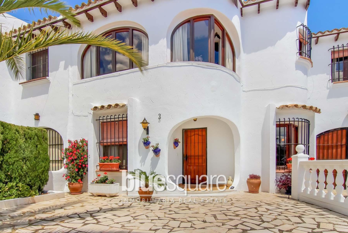 This fantastic 3 bed 2 bath house would make an excellent investment or holiday home, or even a permanent home. The property is on a small urbanization just 1.5km from the centre of Calpe on an easy level walk with no steep hills in between. Downstairs there are two double bedrooms and a bathroom. There is a covered seating area and attractive private rear garden terrace. The rear of the garage has been converted into a large kitchen making alfresco dining easy. On the upper floor there is a master bedroom with a small dressing room, A good sized living room and dining space, a kitchen and a bathroom. The floors are connected via internal stairs. Outside there is a private driveway and sun terrace to the front, and another sun terrace to the rear, perfect for the choice of sun or shade at any time of day. There is also a very attractive and well maintained communal pool area, and tennis courts also on site.