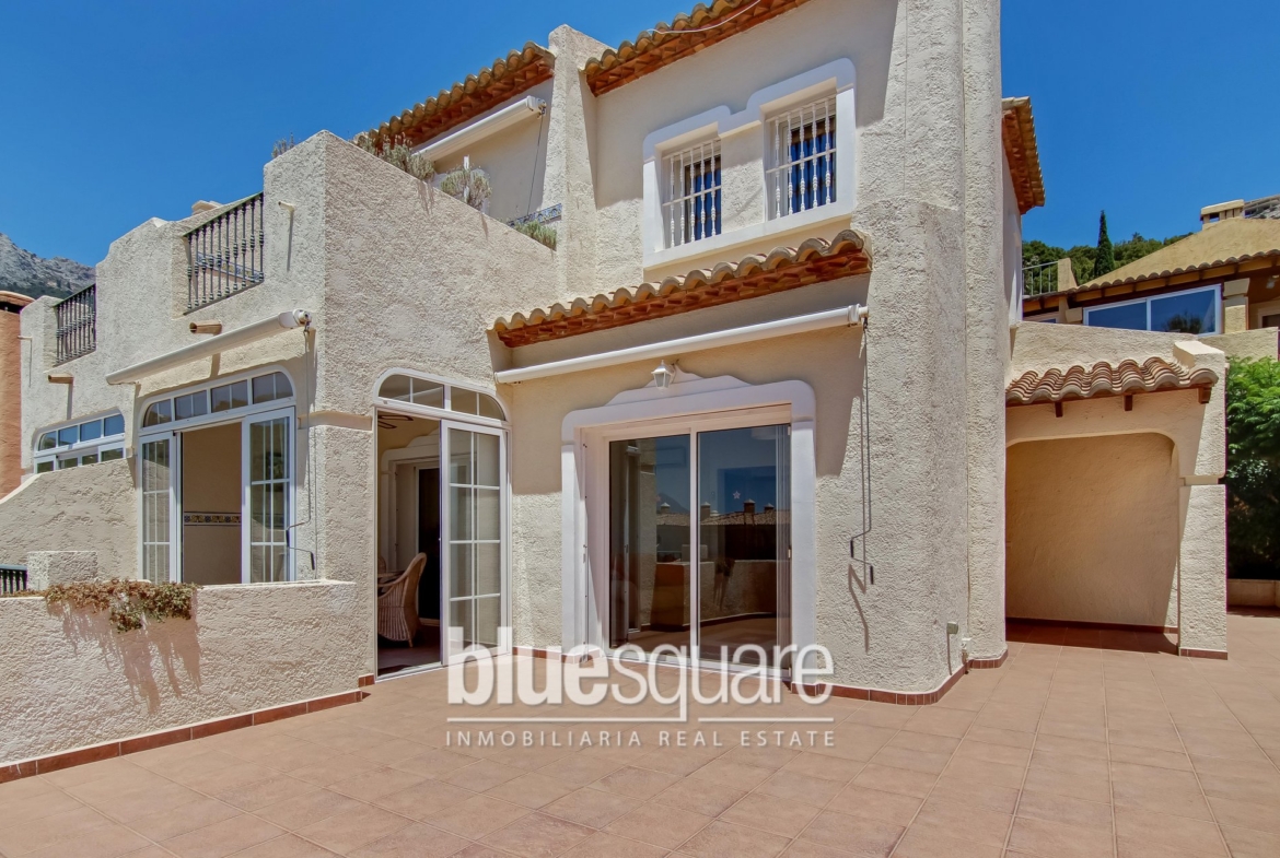 This lovely 3-bedroom townhouse lies in the famous area of Altea Hills, in a private security gated complex close to all amenities. It has a big terrace with fantastic far reaching panoramic views of Altea and its beaches. The property has been kept and maintained to a very high standard. On the ground level, there is a bedroom and a bathroom. There is a nice living and dining area with a fireplace, an independent beautiful kitchen and an additional sitting area with amazing views. They all lead out onto the large south facing terrace. On the first floor, there are 2 bedrooms and 2 bathrooms. The master bedroom has an en-suite bathroom, and a lovely south-facing terrace with far reaching sea views for you to enjoy those lazy sunny days. There is a private garage and and the property has access to the fantastic large communal swimming pool, which benefits from a private life guard during the summer months, and an additional small pool for the children to enjoy. The property is located within walking distance to local bars and shops on the Altea Hills complex, and only 1km away from the stunning golf course of ´Altea Golf´. If you are looking for a good investment, this is one not to be missed! Viewing is highly recommended!