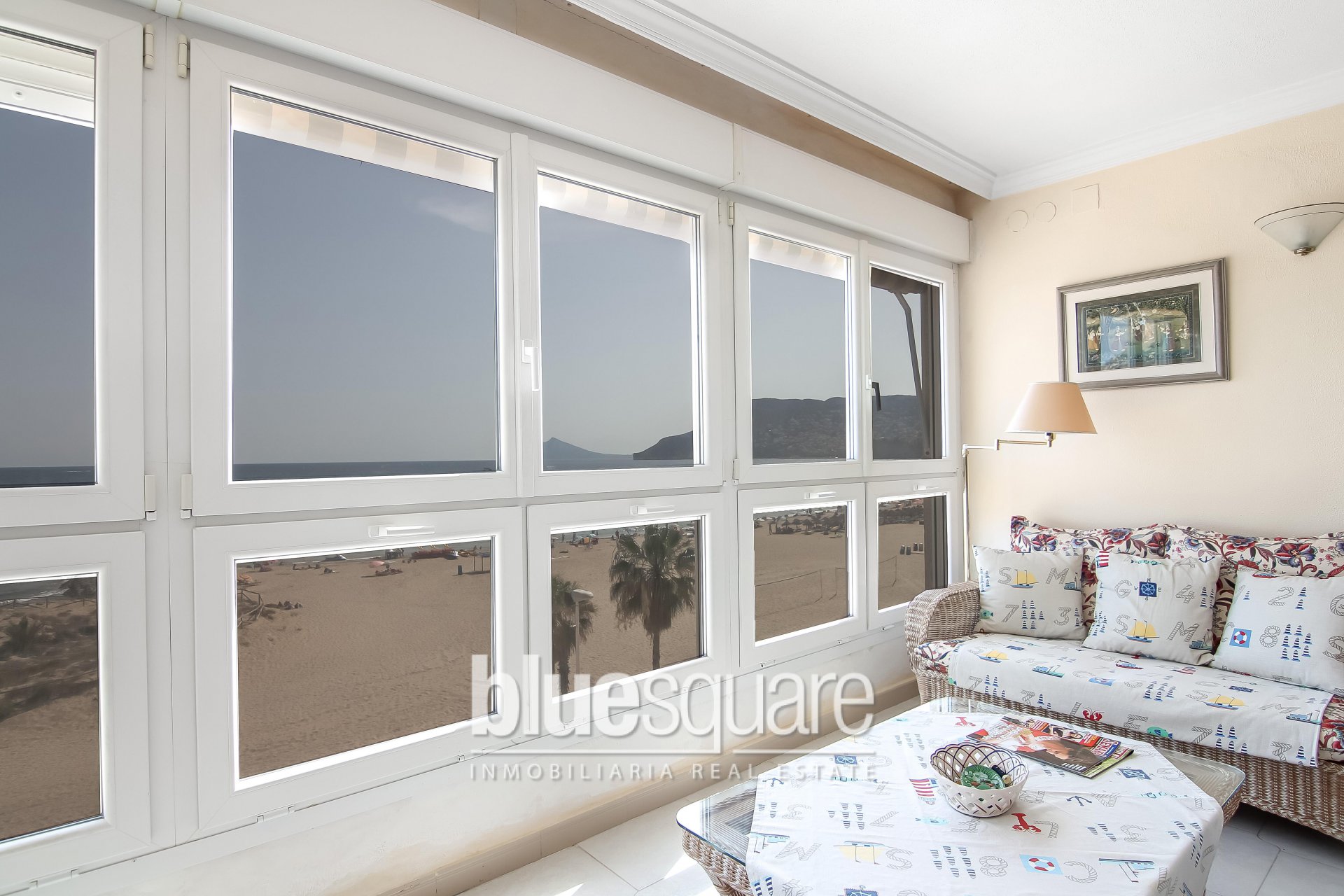 First line apartment on the Arenal beach with splendid sea views and penon from the living/ dining room and also from 1 bedroom. This spacious apartment has a fully equipped kitchen and laundry room, a living dining room with spectacular sea views, 2 bedrooms and a large bathroom. Literally 10 steps from the beach, and 300 metres from the towncenter.