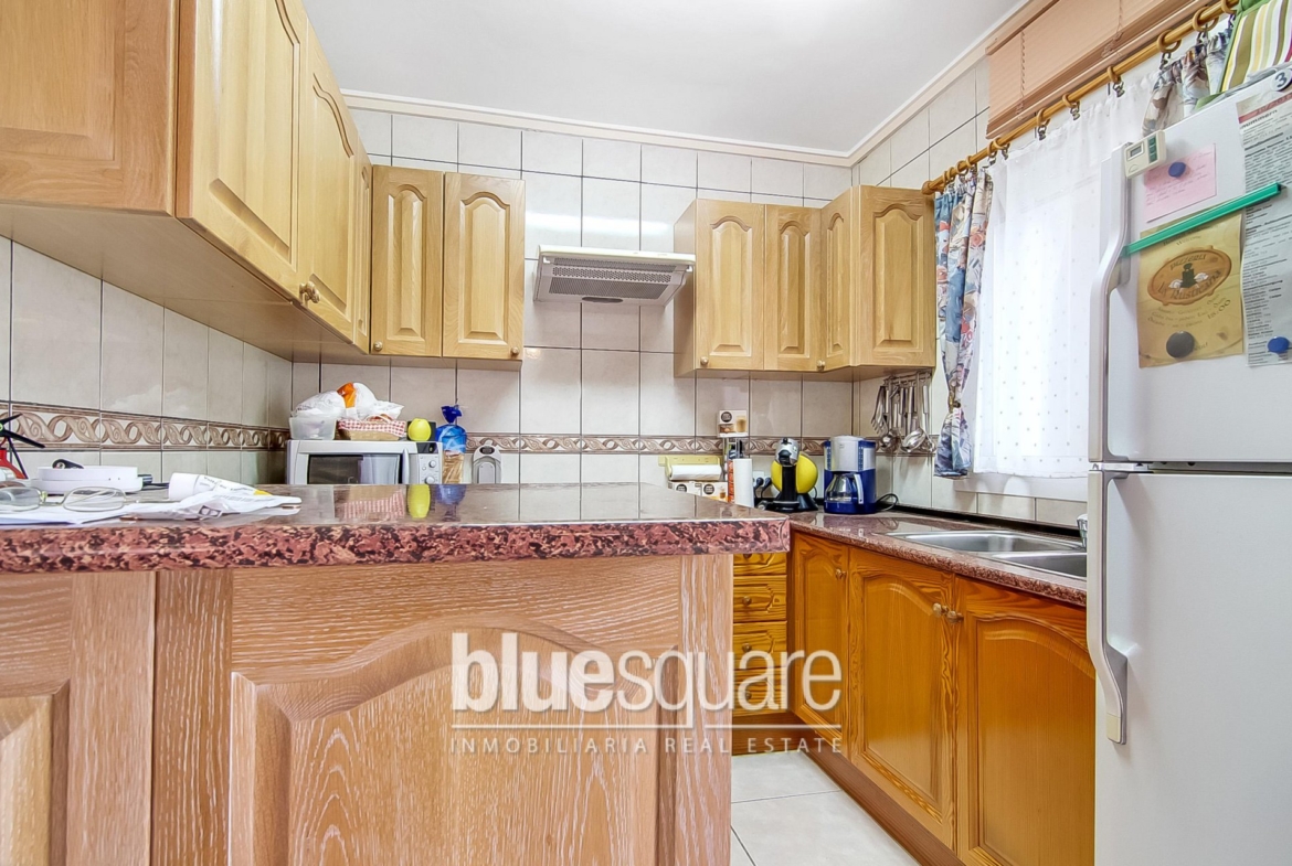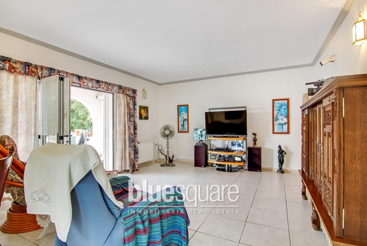 This villa is situated on a hill in a quiet area with nice views towards Calpe. The villa is all on one level and consists of 3 bedrooms and 2 bathrooms (1 en-suite), a living/dining area and open fully equipped kitchen. The bright living area with French doors leads to a large partially covered terrace where you can enjoy the sun all day long. From the terrace there is access to the garden with lovely plants and trees, an outside shower and there’s space to build a swimming pool. On the top of the house there is a solarium with nice sea views. The property benefits from a carport.