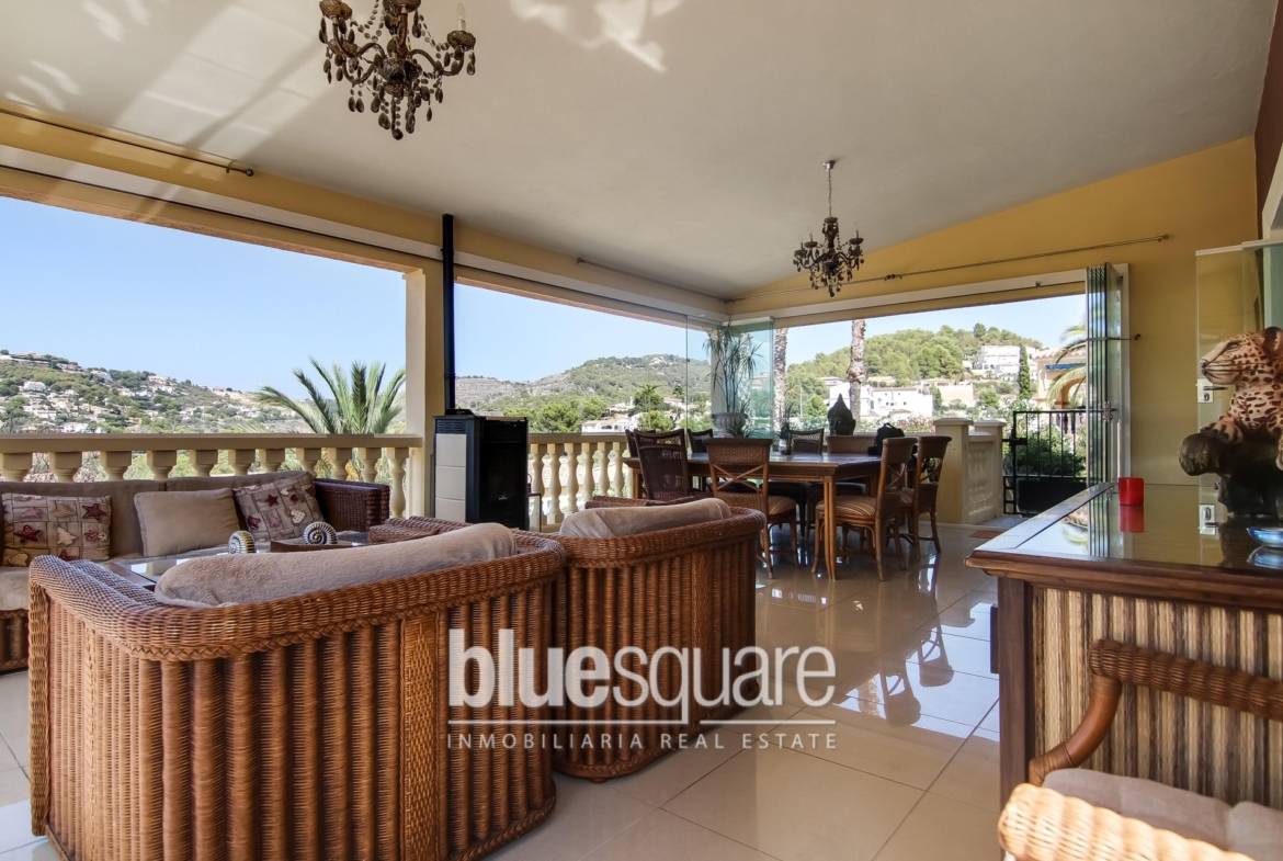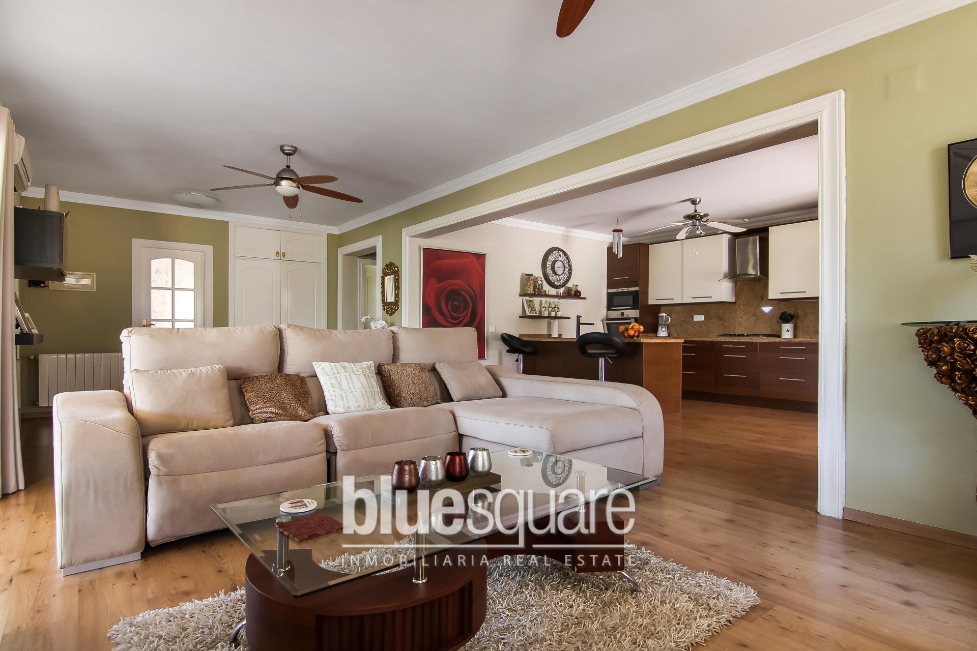 This well presented villa sits on a large plot of 1275m2 and boasts some stunning views of the mountains. Divided into 2 separate spacious apartments, with 2 bedrooms and one bathroom in each. Beautifully presented with large naya glazed in terrace, open plan modern kitchen, living room with log burner, 2 double bedrooms, modern bathroom and office in the main living area. Below you encounter a further two large bedrooms, separate independent kitchen, spacious living room and bathroom. There are 2 garages, one for 2 cars and a gym and the other is for one car plus parking for 5 cars. The mature gardens & grounds offer a lovely summer kitchen, bbq area & private pool. The property is extremely private, fully fenced all round with an electronic gate.