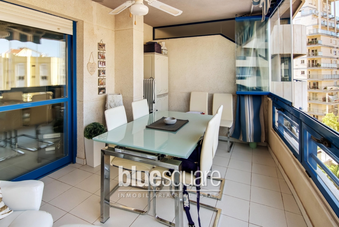 This well situated apartment is situated on the Levante beach with lovely sea views from both of its 2 large terraces. This apartment also comprises of 2 bedrooms with one en-suite bathroom, a family bathroom, separate independent kitchen, living dining room and hallway. Fully furnished, hot & cold air-con and parking space. The apartment complex benefits from outdoor swimming pools, gardens, concierge and direct access to the beach.