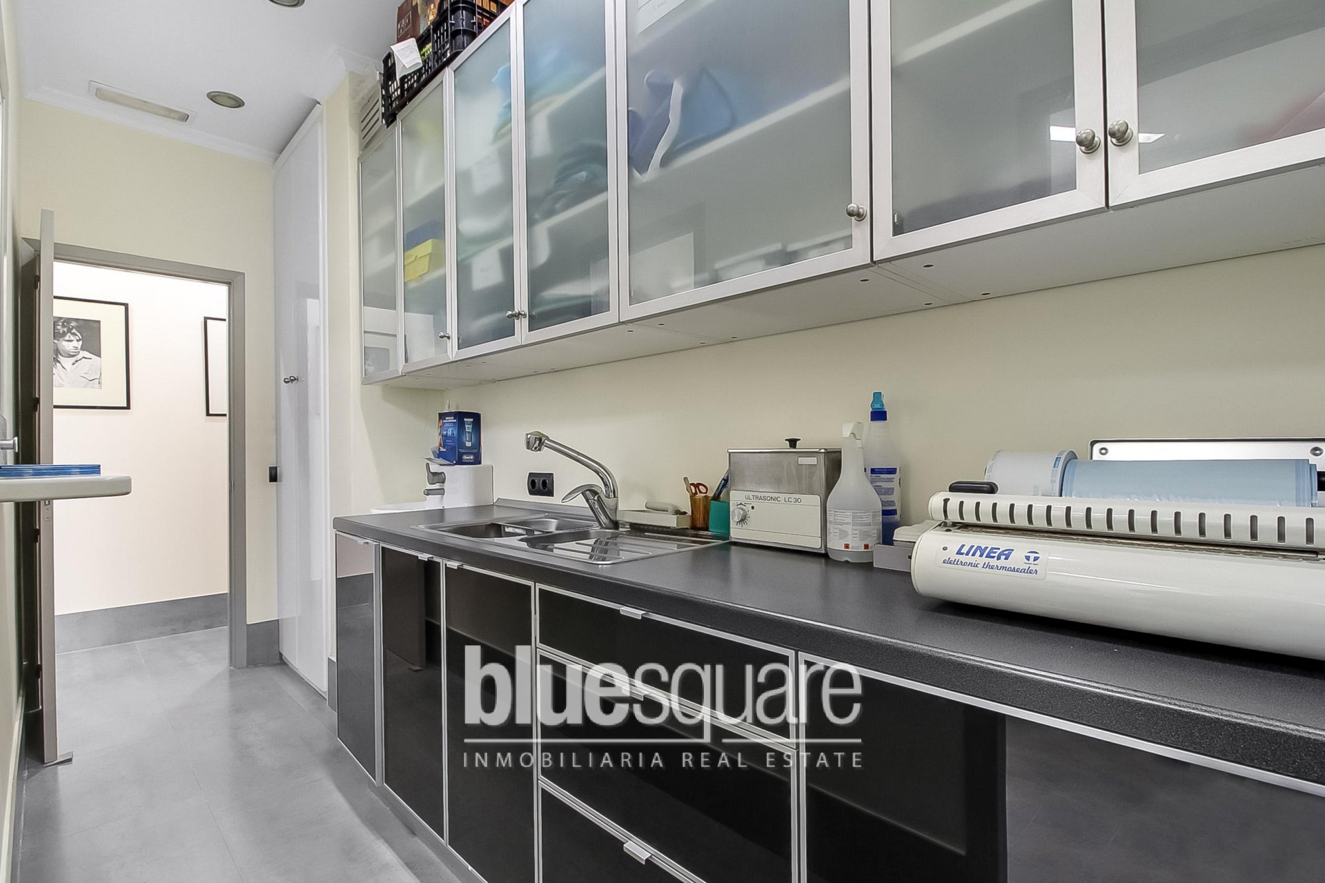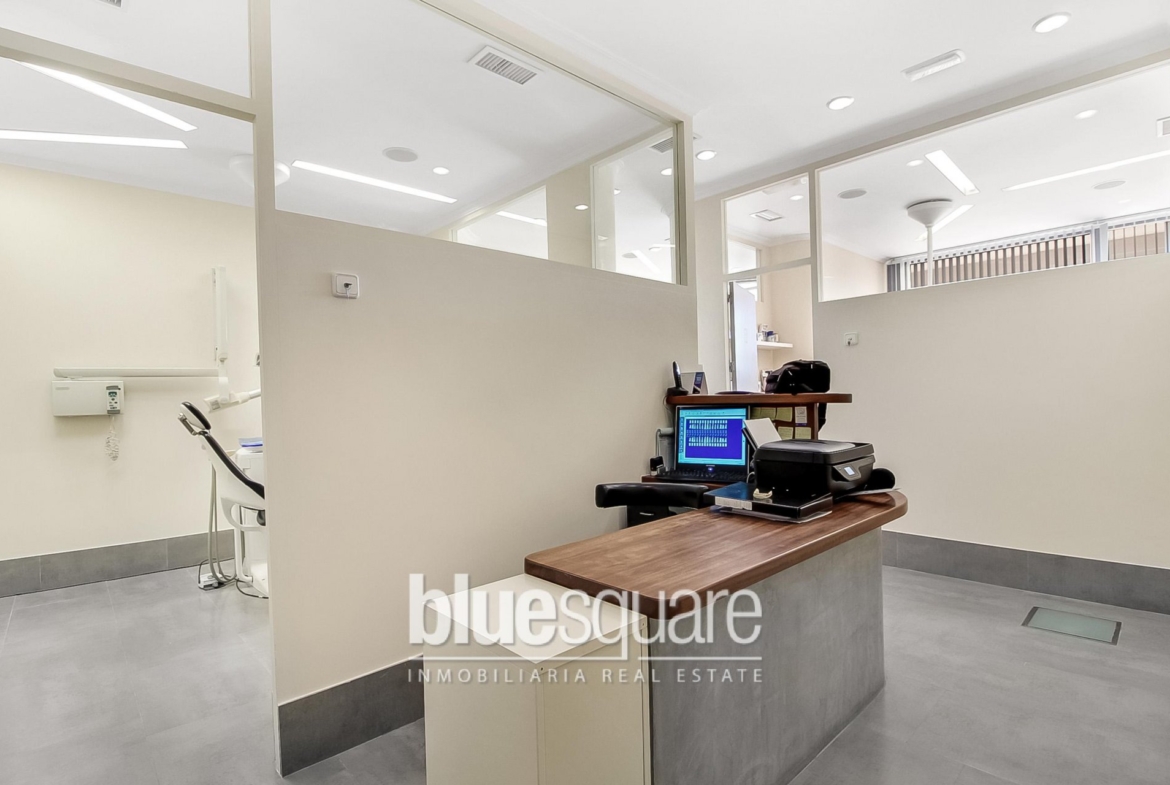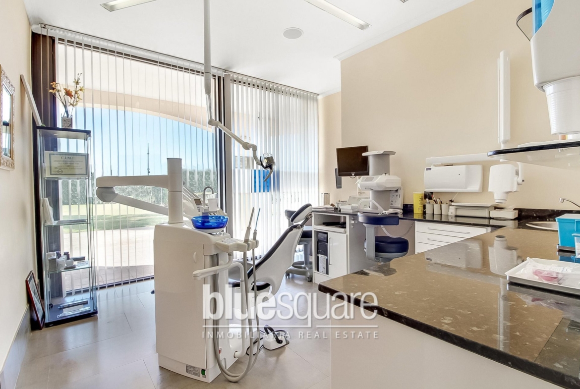For sale. Large commercial premises equipped as a dental clinic with a polyvalent health centre license. The clinic is located in one of the most exclusive areas of Ibiza: Marina Botafoch. The space is very well organized. There is a hallway with a waiting room for patients and reception area, two dentist practice rooms, a small kitchen, a room with equipment for panoramic radiography and teleradiology, a surgery room that communicates with a sterilization room and a bathroom. All the devices are of last generation and of high range. Perfect for investment!