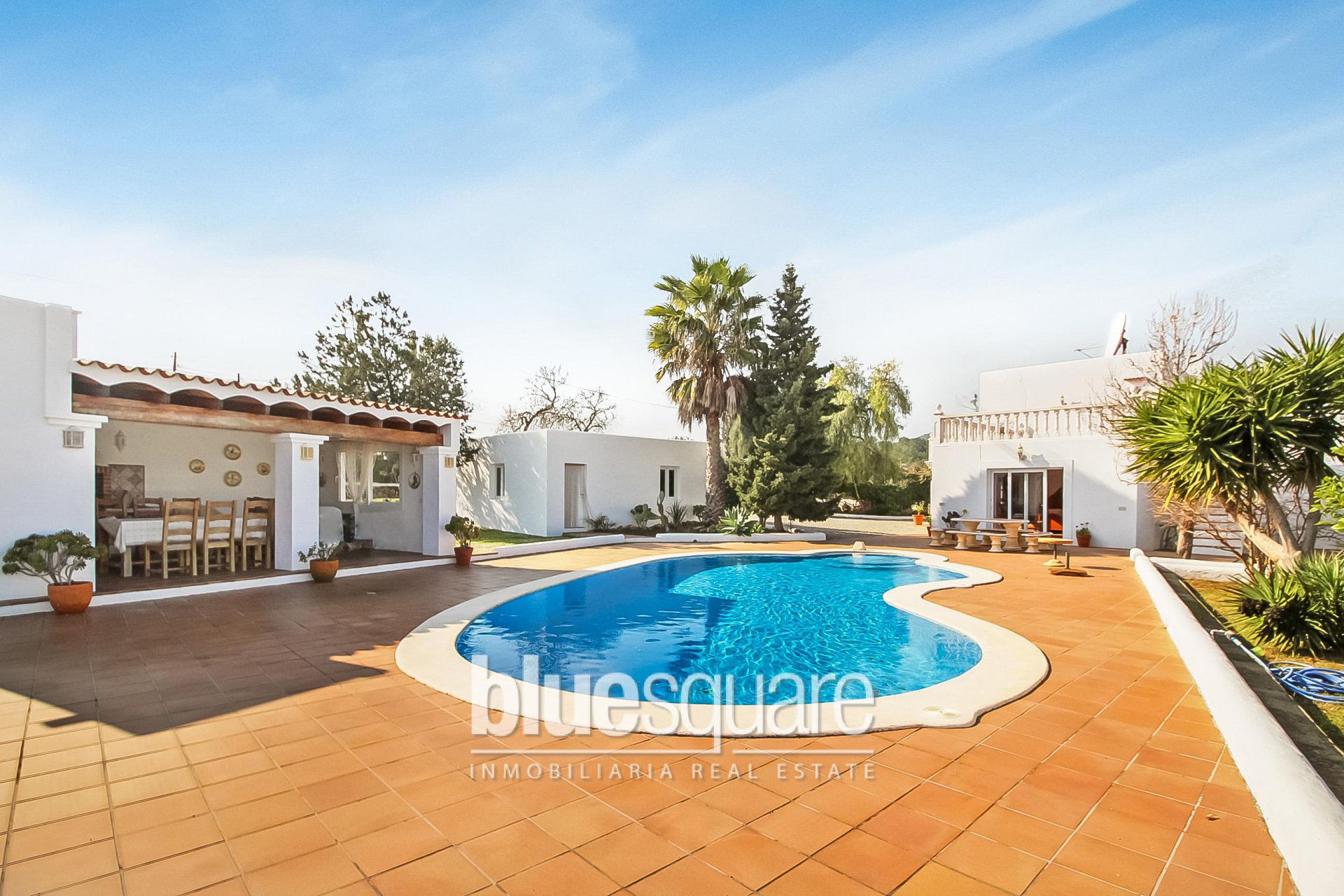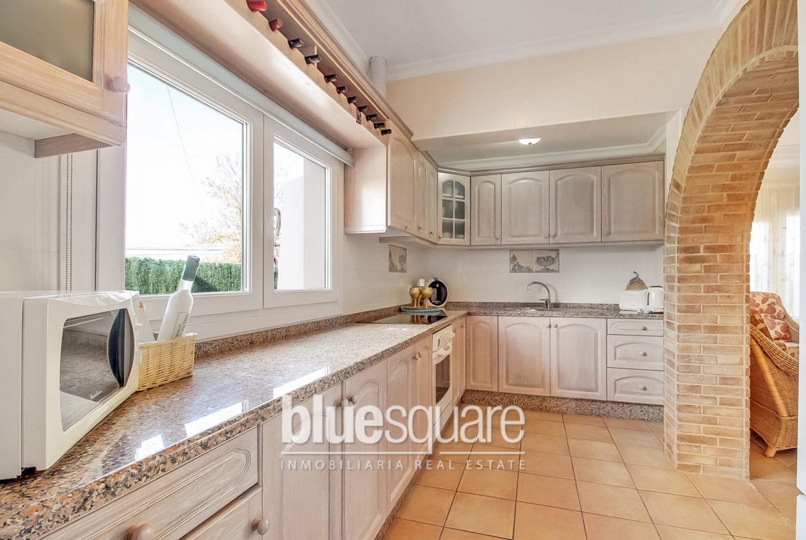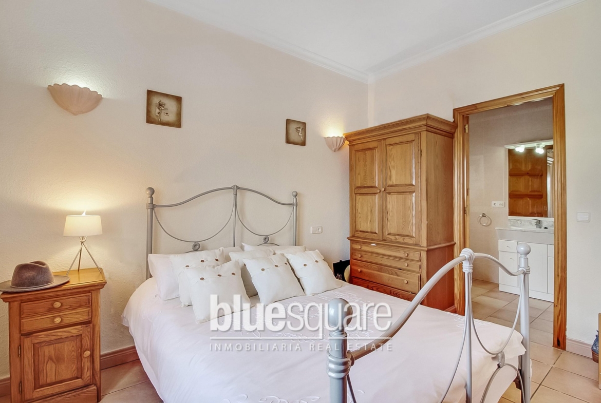 Wonderful two-storey property on a plot of 2,000m2. The house disposes on the ground floor of a large living room and a dining room with fireplace, a kitchen and two spacious bedrooms with en-suite bathrooms. On the first floor is a single bedroom and the master bedroom with air conditioning, bathroom en-suite, dressing room and access to one of the two terraces on this floor. The pool area is surrounded by fruit trees and includes a covered barbecue area with shower-room. The property also benefits of parking for two cars. Central heating throughout the whole house.