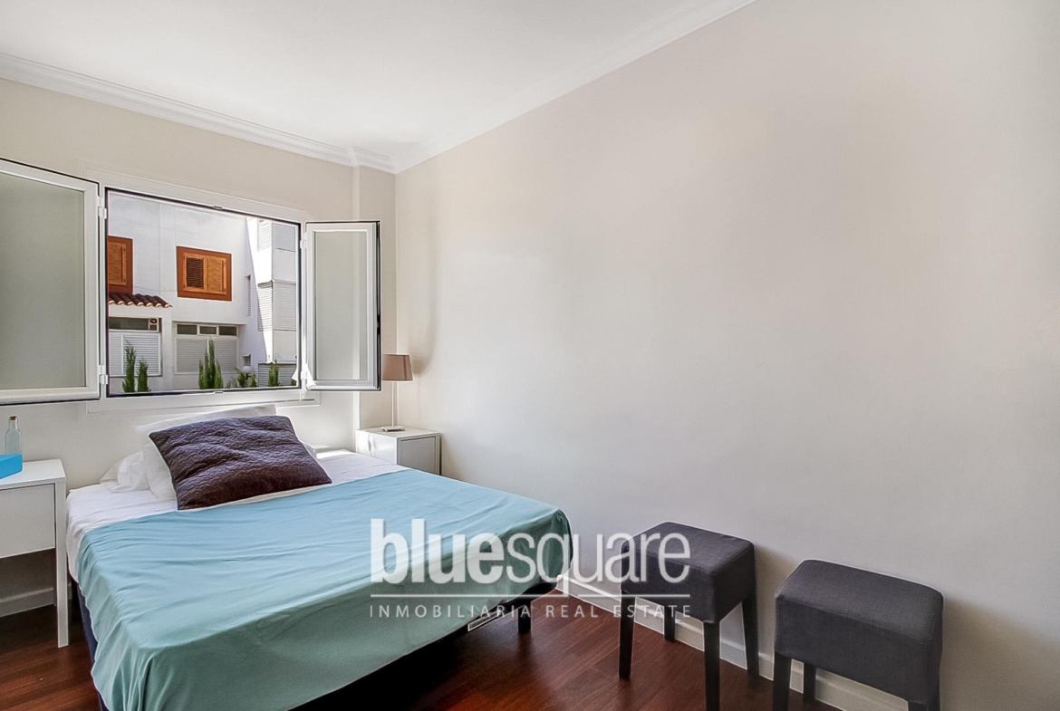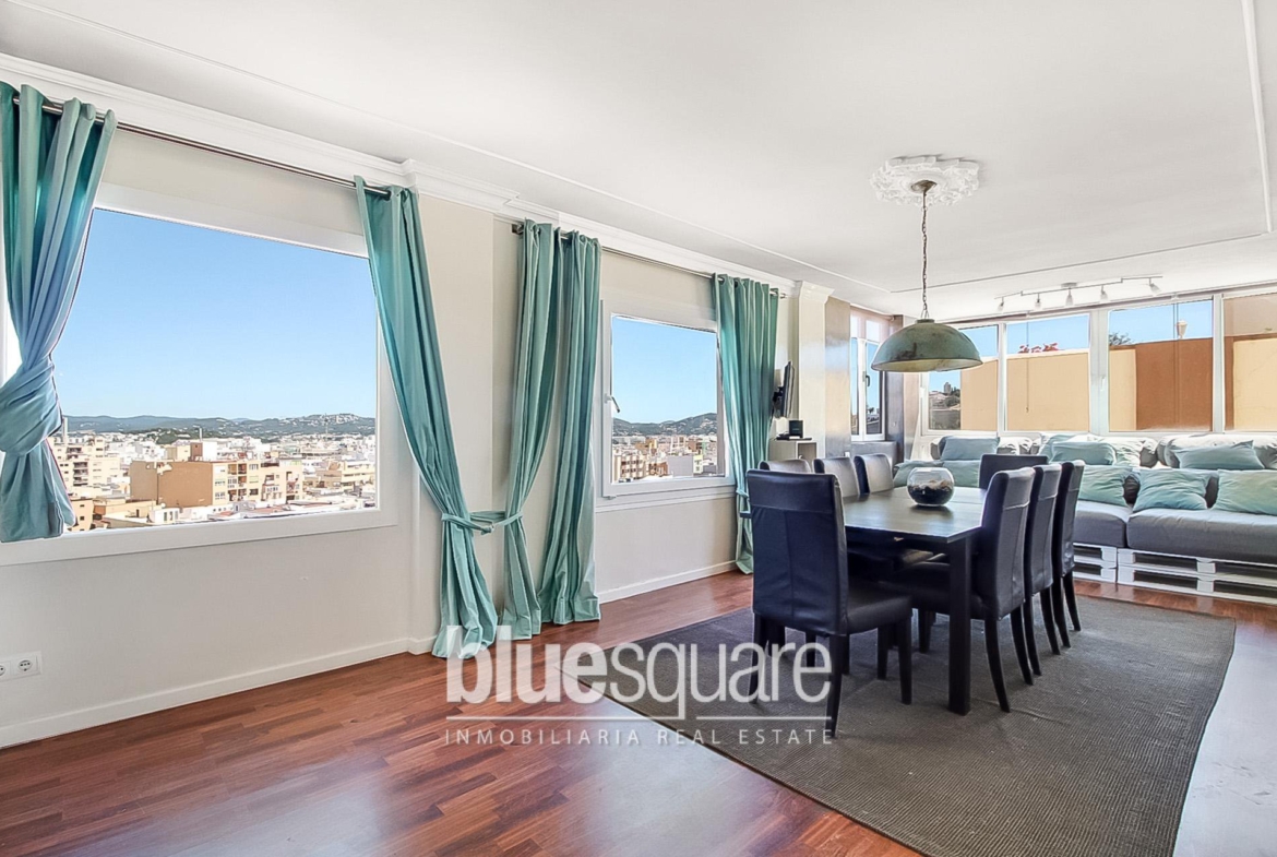 This property is located in a very calm neighbourhood near Figueretes with amazing panoramic views to the entire city and the castle of Dalt Vila as well as partial sea views. The apartment consists of 3 bedrooms, 1 bathroom, and a toilet inside the master bedroom. The kitchen is integrated in a large living/dining room with lots of natural light coming in from the large windows from which you can see the whole city and the old castle of Ibiza. In this property you’ll be able to enjoy of a peaceful area within minutes from the city centre and the beach and the touristic spots of the eastern side of the island.