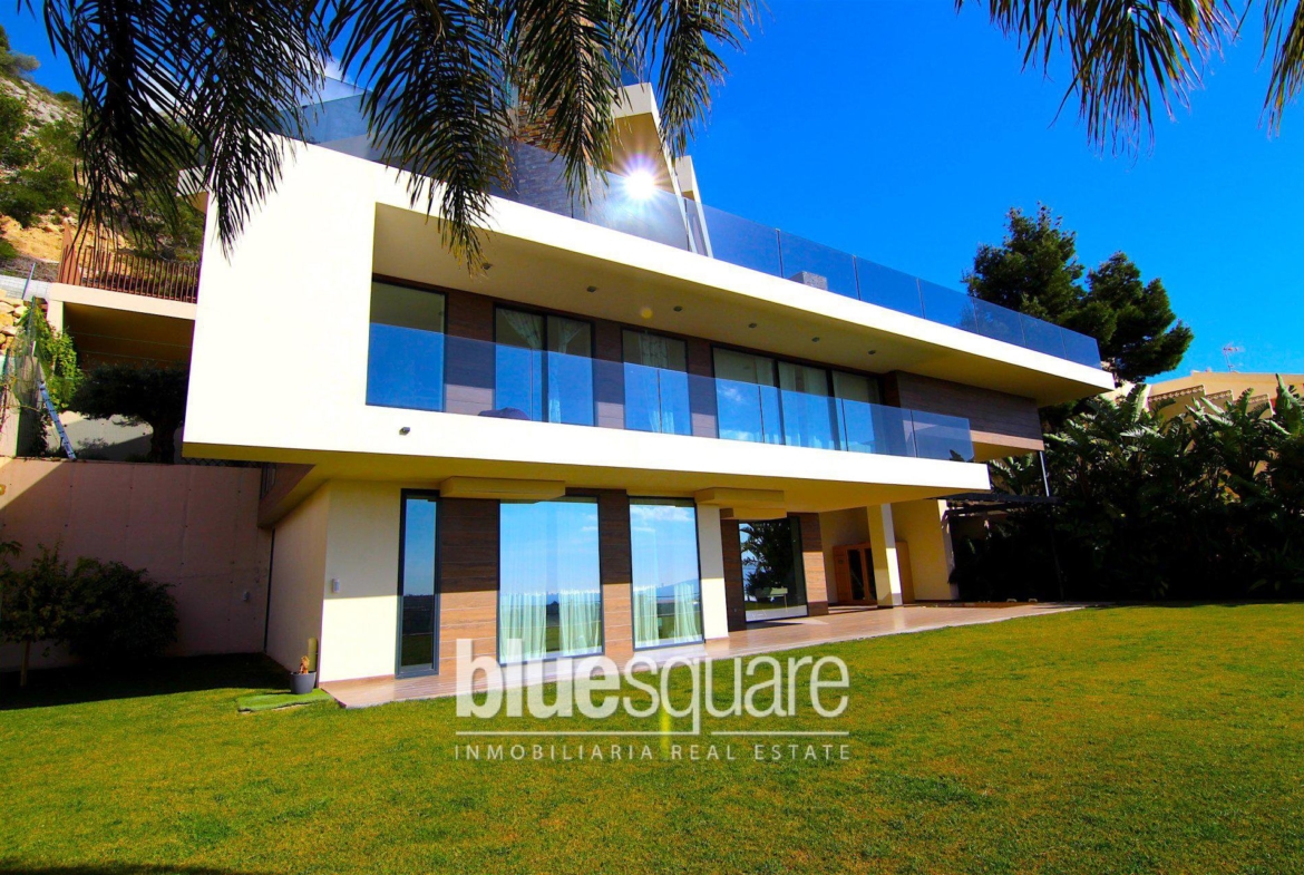 This ultra modern villa benefits from a unique architecture on the heights of Altea hills. There is a huge living space divided into 3 open areas and the terrace, there is an impressive modern kitchen fully equipped. This entire floor is connected to the terrace by a magnificent bay window, that lead onto the unique heated pool overlooking the bay. Taking the elevator instead of the stairs we access the living room with a large bedrooms, large bathrooms and a very luxurious decoration. Not to be forgotten, the house offers a lift, a large outdoor heated pool spa with a Jacuzzi and a sauna, a modern style fireplace, convenient parking spaces and storage. A lawn with natural grass with a raised garden. There is a large outdoor parking area that can hold several vehicles.