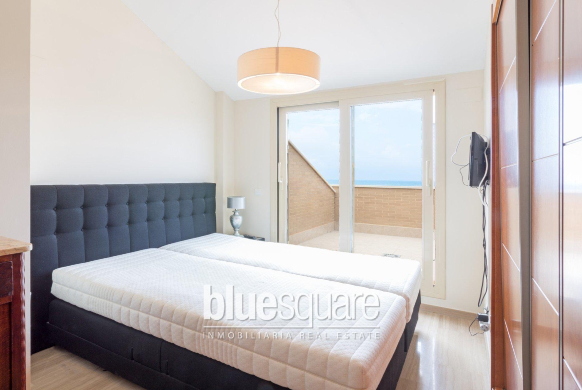 Luxury duplex penthouse on Javea’s Arenal frontline with spectacular views of the Mediterranean, towards Cap San Antoni and over the lush gardens and swimming pool area. Built in 2008, this is one of the most exclusive and sought after buildings in town. On the ground floor there is one bedroom and a bathroom, a state of the art kitchen with small balcony, a comfortable living/dining room and a large shaded balcony. On the top floor there are three bedrooms and two bathrooms, one of which is en suite. There are two sundecks, one is shared with two bedrooms and has sea views and the other is a small private one, out back, with mountain views. Everything is of high quality including marble floors throughout, hard wood doors and frames, double-glazed safety glass, thermostats in each room, central air and heat and skylights. If you are looking for luxury in the sun, this is the place.