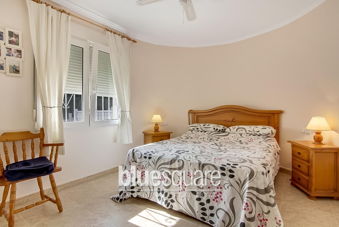 Bright and sunny 3 bedroom, 2 bathroom villa set in the quiet Monte Solana urbanisation. The property, set all on one level, contains a large open plan living room, dining area and kitchen, leading out to a glazed terrace (naya) with beautiful mountain views. There are three bedrooms (one ensuite, all with built in wardrobes) and a family bathroom. The outdoor space features the kidney shaped pool and several seating areas and is tiled for easy maintenance. There is a carport and a large underbuild (currently housing the laundry room) which could easily be expanded to provide additional living accommodation. The property is a 3 minute drive from the village of Pedreguer with all it’s amenities.