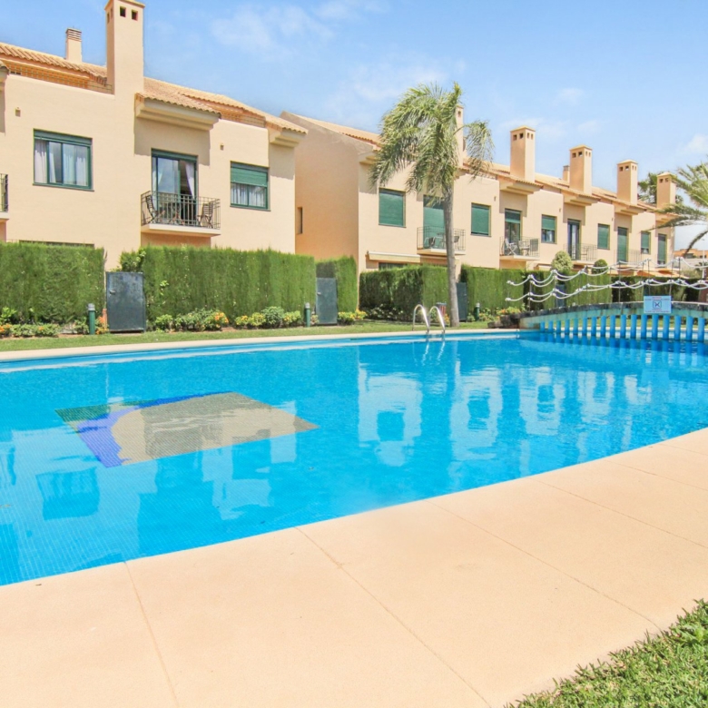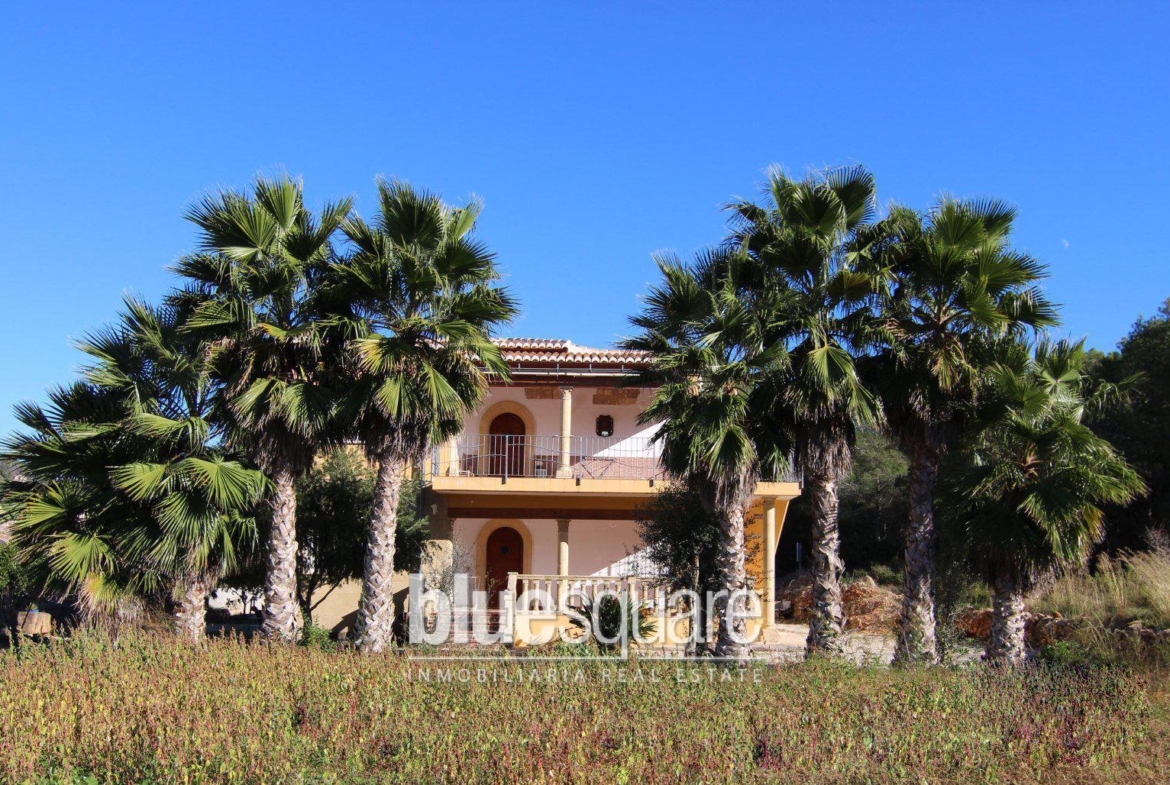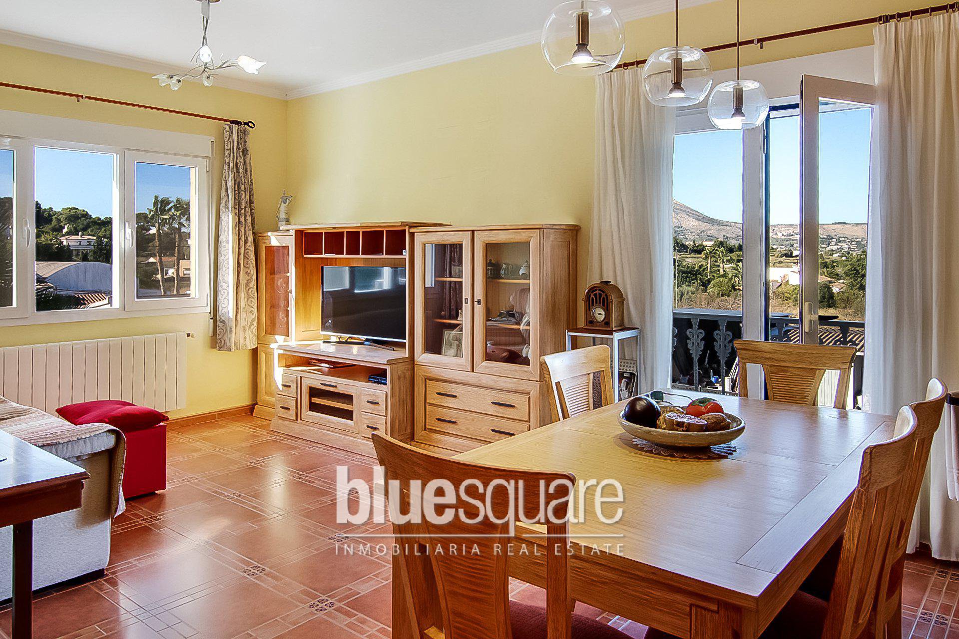Large property divided into 2 separate living accommodations. Downstairs there is a living/dining room, kitchen, a bedroom with an ensuite bathroom and walk in wardrobe and a large garage that could be easily converted into more living space. Upstairs there is a covered terrace with nice views towards the Montgo, a living room, kitchen, laundry room, 3 bedrooms and 2 bathrooms. The house is set on a large flat plot and there is lots of space for a pool.