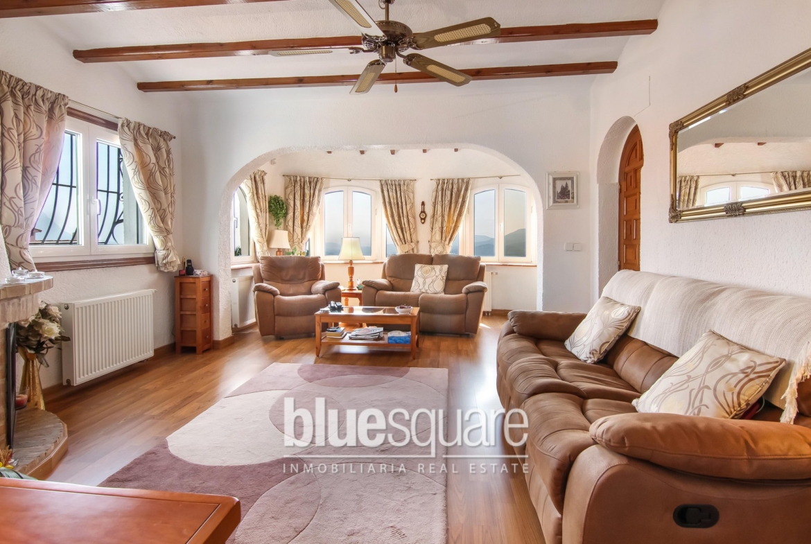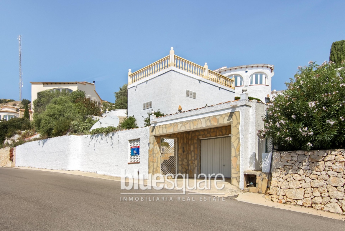 Exclusive to Blue Square is this detached 3 bedroom 3 bathroom villa with distant sea views and mountains is presented in excellent condition. The main part of the house consists of 2 bedrooms 2 bathrooms living dining room and kitchen. Accessed separately is another large double bedroom with ensuite ideal for guests. There are various terraces surrounding the villa the pool terrace has the benefit of an additional enclosed terrace with additional kitchen suited to outside dining. The gardens are designed for low maintenance and stocked with Mediterranean plants. A large garage with space for 2 cars has plenty of height for additional storage. Viewings recommended.