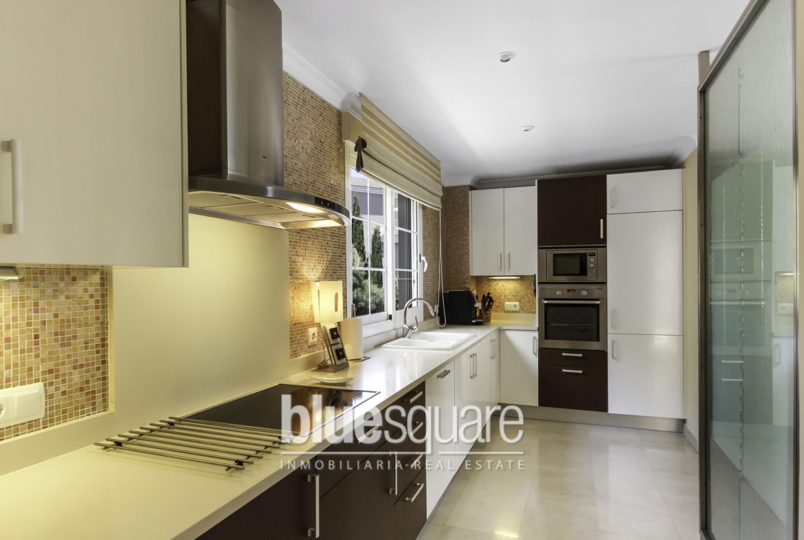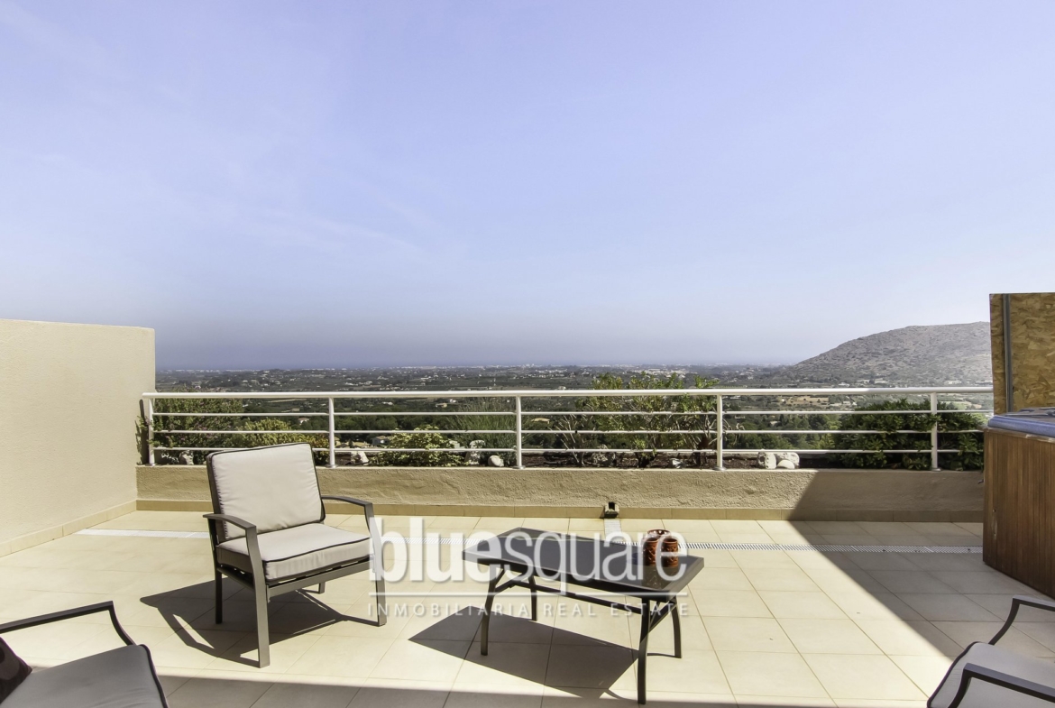 Are you aspiring to touch hands with the rich and famous and live in the most prestigious apartment blocks on the La Sella golf Resort! If so then this stunning apartment with it’s fabulous large terrace ,and Hot Tub with panoramic views of the sea and Golf Course, needs to go to the top of your viewing list. As soon as you enter the gate and communal areas you will be impressed with the well kept grounds, driveway and parking. Inside the apartment is a spacious entrance hall, beautiful family bathroom, stunning fully fitted kitchen with integrated appliances, utility room, Master bedroom with fully fitted wardrobes patio doors out to the balcony,,en-suite bathroom, and spacious lounge/dining room with french doors out to the large balcony with plenty of room to entertain friends and family and take in the commanding views of the sea and Golf course. The second bedroom has been extended into the lounge to make for more living space ,but could easily be put back to the second bedroom if required. The entire apartment is light and airy and all rooms have beautiful views. Further features to note are hot and cold air con and under floor heating,Car parking, and large storage area are all included. The communal pool is beautiful with plenty of sunbathing areas. La sella has every thing you would expect from a upmarket golf resort including tennis, horse riding, shops ,pharmacy, and restaurant. not forgetting the Marriott hotel. La sella is just a 15 minute drive from Denia and Javea blue flag beaches and in easy reach of all network roads.