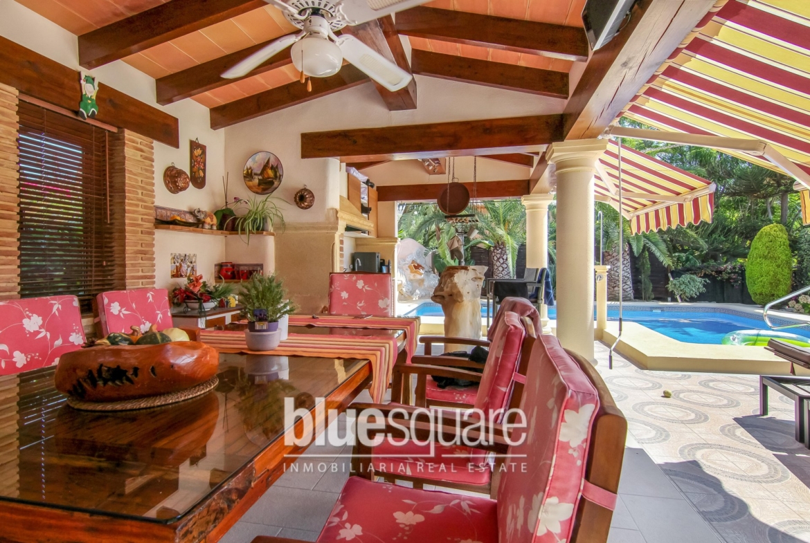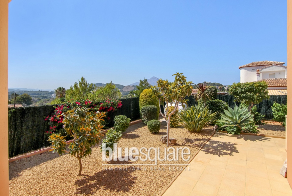 We are proud to present this three bedroom, two bathroom property which is in immaculate condition. The garden is very low maintenance, with artificial grass and many fruit trees. The outside kitchen is unique and very well designed and the covered dining area looks at the large L shaped pool. Inside, the kitchen, dining and living area is again very well designed and beautifully finished. There are two bedrooms and a bathroom downstairs and the master bedroom, another bathroom and walk in wardrobe upstairs. This property is in a great location, has amazing open views of the mountain and country side. It would make a perfect family home or equally a great investment for rentals.