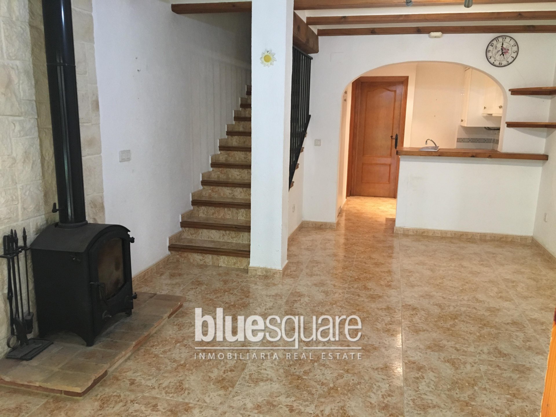 Blue Square is delighted to bring to the market this deceptively spacious townhouse on the desirable and sought after La Sella Golf complex, just 10 minutes from Denia, and fifteen minutes from Javea, the property stands in beautiful grounds with a fantastic communal pool with a cascading water fall, the property would make the ideal holiday home or permanent living. There is an outside seating area, and the front door leads into the spacious lounge/diner with beamed ceiling and feature log burner, American style kitchen with breakfast bar, bathroom/utility room, and bedroom 3 with fitted wardrobes. Stairs from the lounge lead to the landing with doors to the five piece family bathroom, bedroom 2 with Juliet balcony, fitted wardrobes, the large bedroom 1 also has fitted wardrobes and a good size balcony. We would recommend your earliest viewing, as 3 bedroom townhouses on this development are seldomly available.