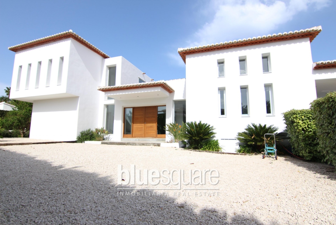 Lovely Modern villa in the Montgo valls in Javea. The villa was build 8 years ago and is distributed over 2 levels. On the ground floor there is a very spacious open plan living/dining room, open kitchen, 3 bedrooms, 3 bathrooms, laundry room and a courtyard. On the first floor is a very large master bedroom with large bathroom, dressing room and private sun terrace. Outside there is a covered terrace, a swimming pool and outside room suitable as a games room or outside kitchen. The villa has underfloor heating and an alarm system.