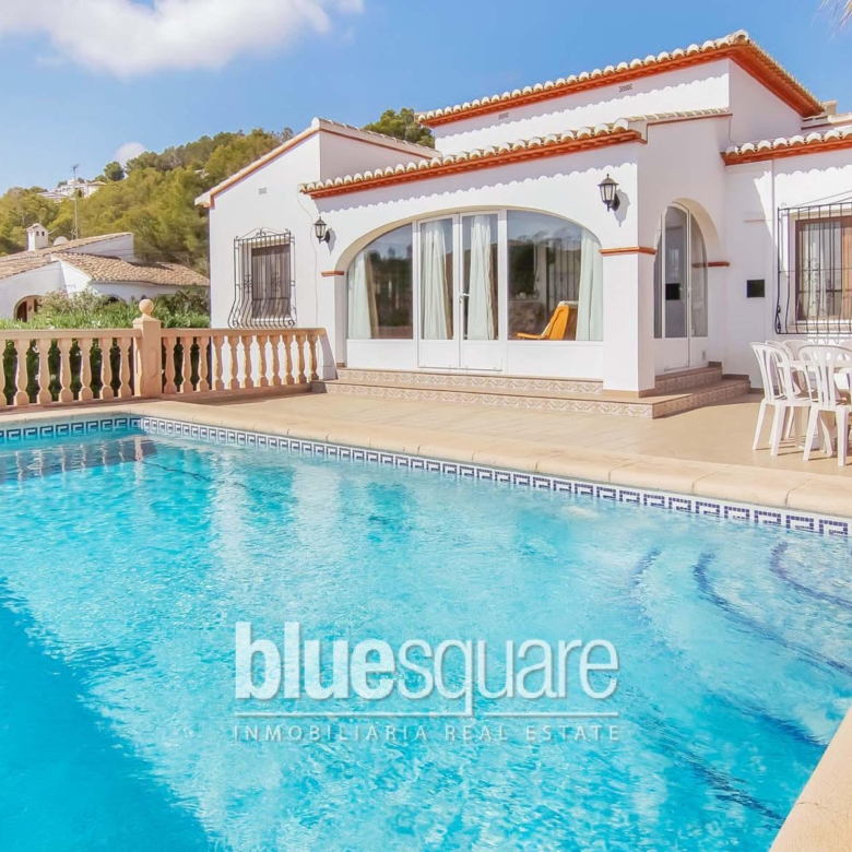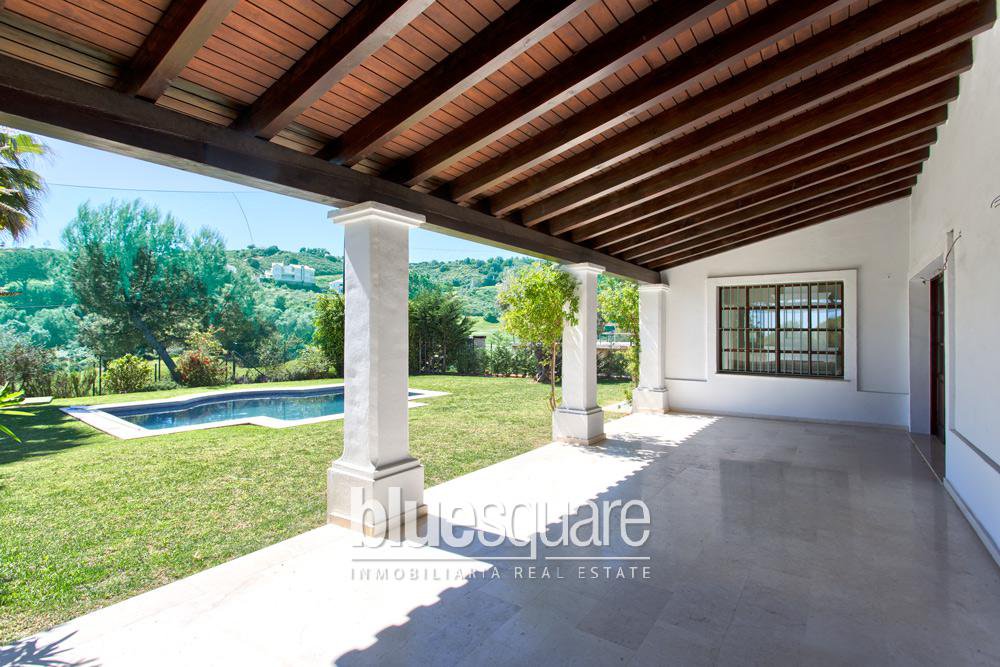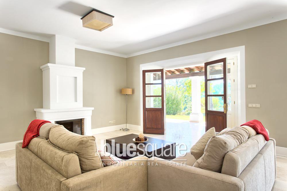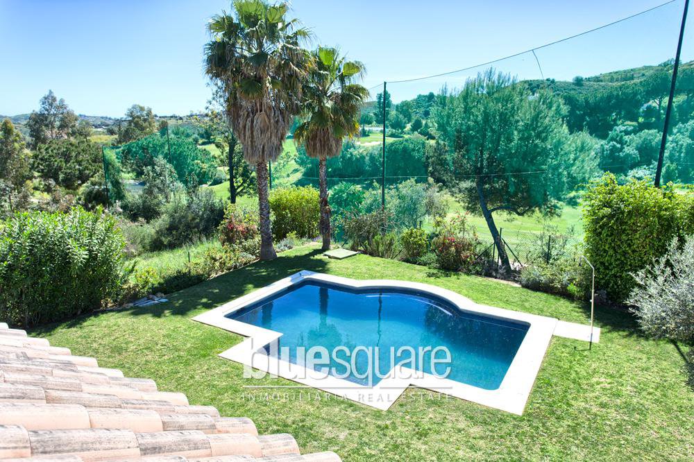 Nice villa with lots of light, frontline La Cala de Mijas Golf, south to south-east facing with views to the golf. Less than 10 minutes (5,5km) to the coast, the beach and all amenities. Spacious living area with fireplace and high ceilings and direct access to the covered terrace, garden and a private pool. Fully fitted kitchen, dining area, master bedroom suite and 3 further guest bedrooms suite.