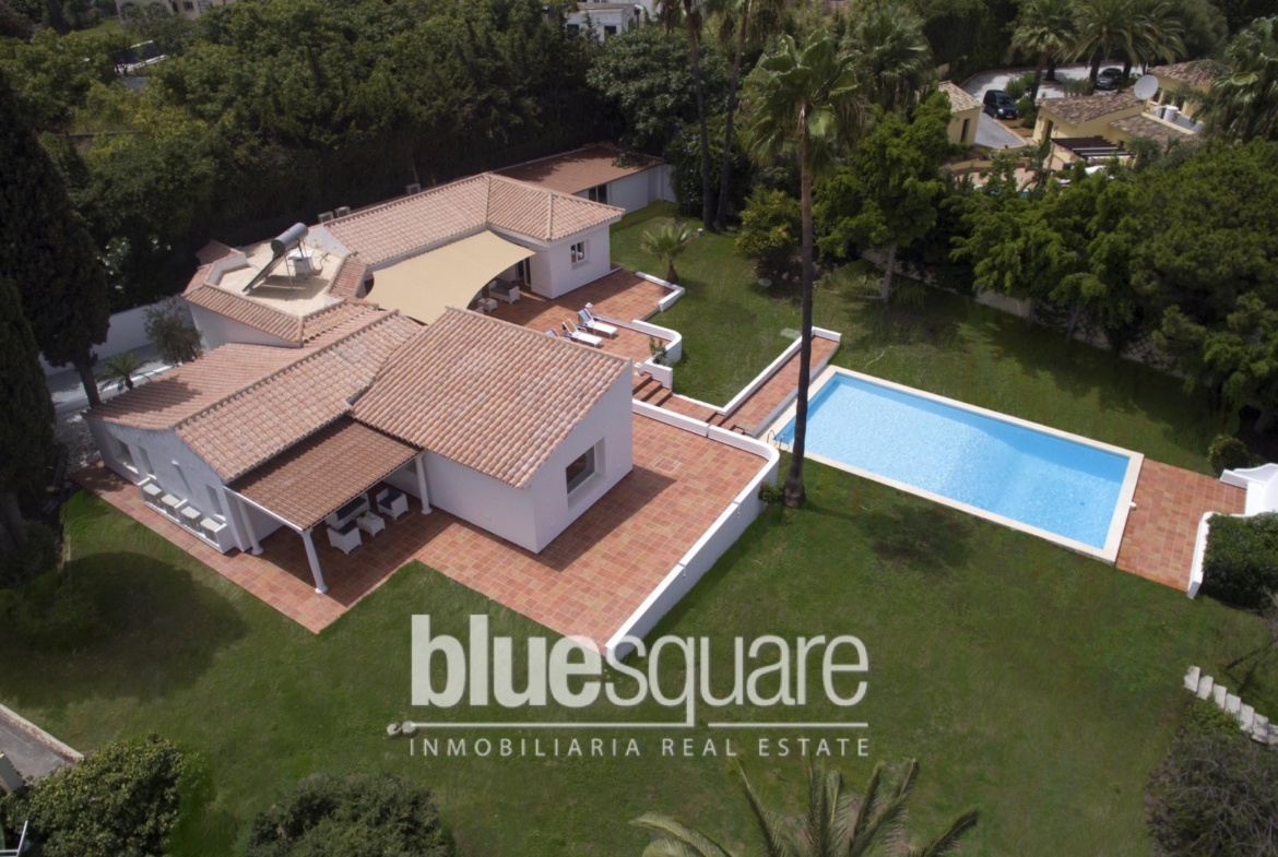 Private and renovated villa on a large plot only a few minutes from the beach of Estepona. The villa has 4 bedrooms with 4 en suite bathrooms, 1 guest toilet, and fully new and equipped kitchen open to the living room, a large terrace of 200m2, private pool, barbecue area and a beautiful garden. Its fantastic location puts it near all the necessary services, 3 minutes from the beach, 15 minutes from Puerto Banus and 10 minutes from Estepona centre.