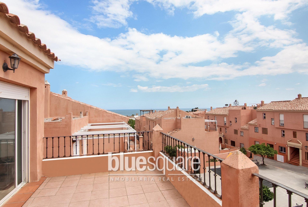 This beautiful duplex with sea view is located in Arena Beach less than 2 kilometres from the centre of Estepona and its port. The duplex is composed on the first level of a large bedroom with en-suite bathroom, as well as a guest toilet. We have a very large fully equipped semi-open kitchen on the living / dining room with a very large terrace overlooking the beautiful courtyard. At the second level we will find a bathroom and two bedrooms each with direct access to its terrace from where you will find beautiful sea views. This duplex is located less than 600 meters from Estepona’s beach.