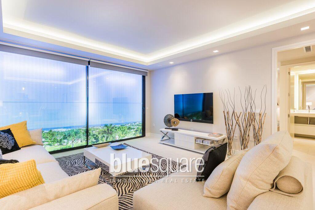High standing and modern apartment, with 2 bedrooms and en suite 2 bathrooms, with sea and mountains views, excellent qualities, modern kitchen, home automation throughout the apartment, garage and storage room, tropical gardens with communal pool. The apartment is located in a prestigious urbanization of Nueva Andalucia Marbella within walking distance of Puerto Banus. Close to all services, International Schools, Golf Courses and Sports Centres.