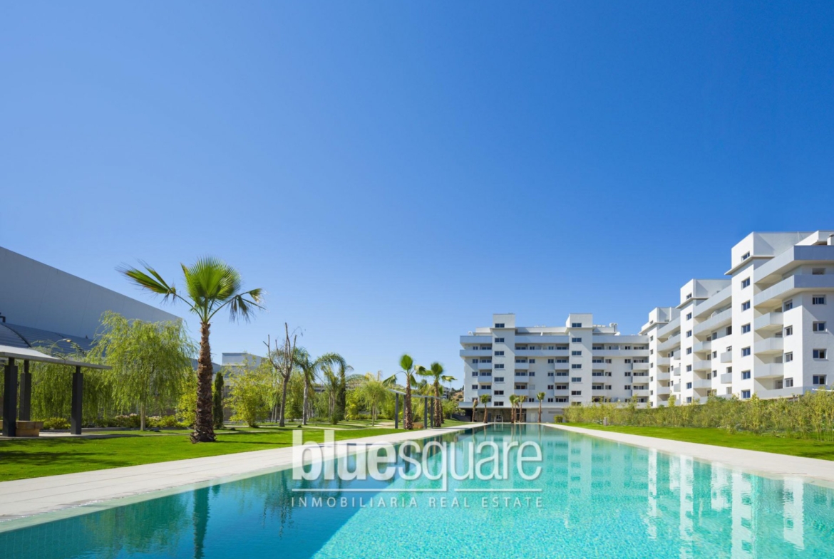 New build : Ideally located, within walking distance to both Fuengirola beach and town centre, near one of the nicest shopping center of the Costa del Sol with cinema, karting, etc… Ideal for a family holiday, the apartment offers 3 bedrooms, 2 bathrooms, a bright and large living – dining room with direct access to the terrace, a nice kitchen with utility room, and two covered garages underground. This new apartment is finished to high standing quality and will be delivered in October 2018.