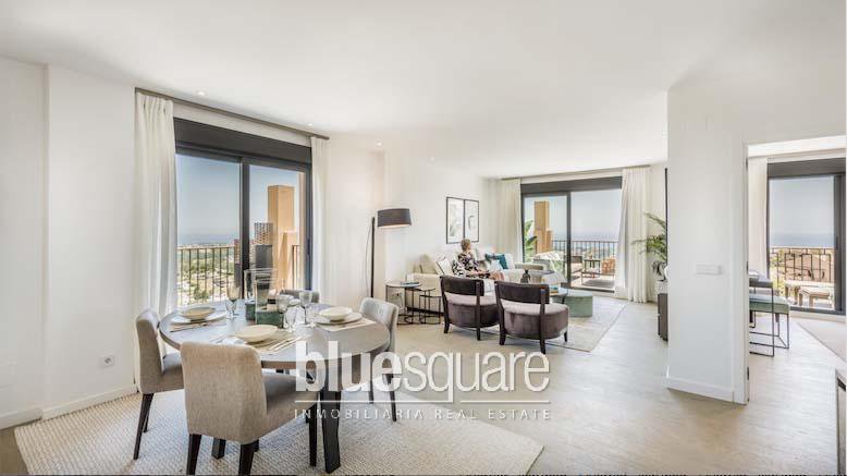 This apartment is less than 10 minutes from all amenities: shops, restaurants etc. and the beach. This complex is ready to be sold turnkey. A complex with outdoor swimming pools that are heated in winter with an outdoor gym, bar/ restaurant and many extras. All this with breathtaking views of the sea and the bay of Marbella to Malaga. This apartment has 2 bedrooms and 2 bathrooms. One of the rooms with direct access to the terrace and views of the mountains and the sea. There is a laundry room adjoining the open kitchen, integrated into the living/dining room. A space with lots of light thanks to the large windows with beautiful views of Marbella, the sea and the mountains. Each apartment has a garage.
