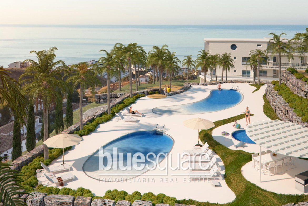 This modern complex has a 24-hour security service. Completion planned for this year. With panoramic views of the sea and 1 kilometer from the beach and all the other amenities. The complex has several swimming pools, children’s play areas, a business center and a rooftop terrace with breathtaking views of the coast. This apartment is on the first floor and includes 2 bedrooms, 2 bathrooms, a large open kitchen integrated into the living/dining room with direct access to the terrace with sea views and plenty of natural light throughout the day. The apartment has a very high quality finish and has two parking spaces plus a cellar. Less than 30 minutes from the centre of Marbella and less than 20 minutes from the centre of Malaga and the airport.