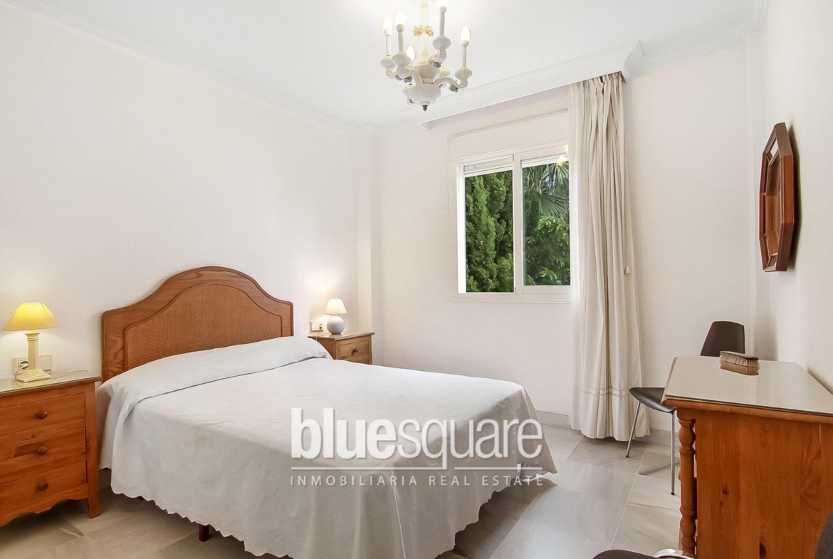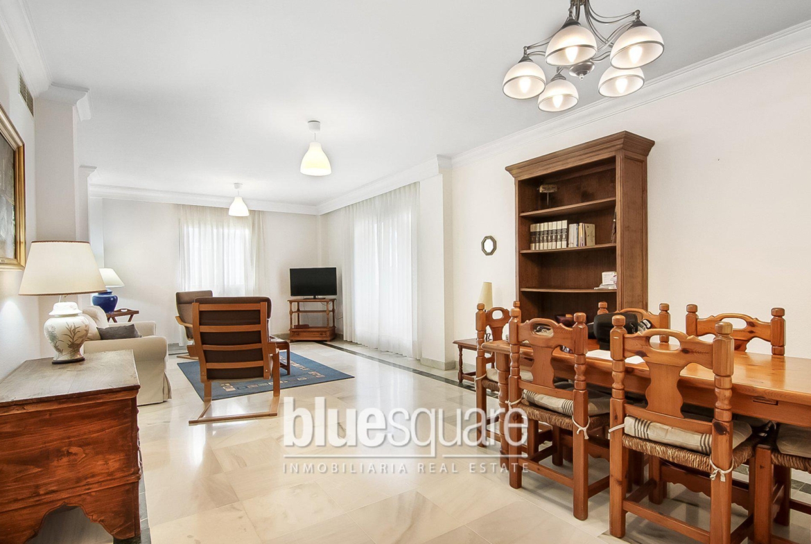Beautiful apartment only few minutes from the beach in the heart of Marbella’s Golden Mile. The apartment has 2 bedrooms, 2 full bathrooms, a kitchen with separate laundry and a large living room with a nice terrace facing west with a fantastic afternoon sun. It is located in a gated complex, the apartment has private underground parking space, communal pool, large and well-kept gardens, paddle tennis court … The fantastic location allows easy access from the highway, as well as shops, restaurants, supermarkets and one of the most prestigious beaches of Marbella.