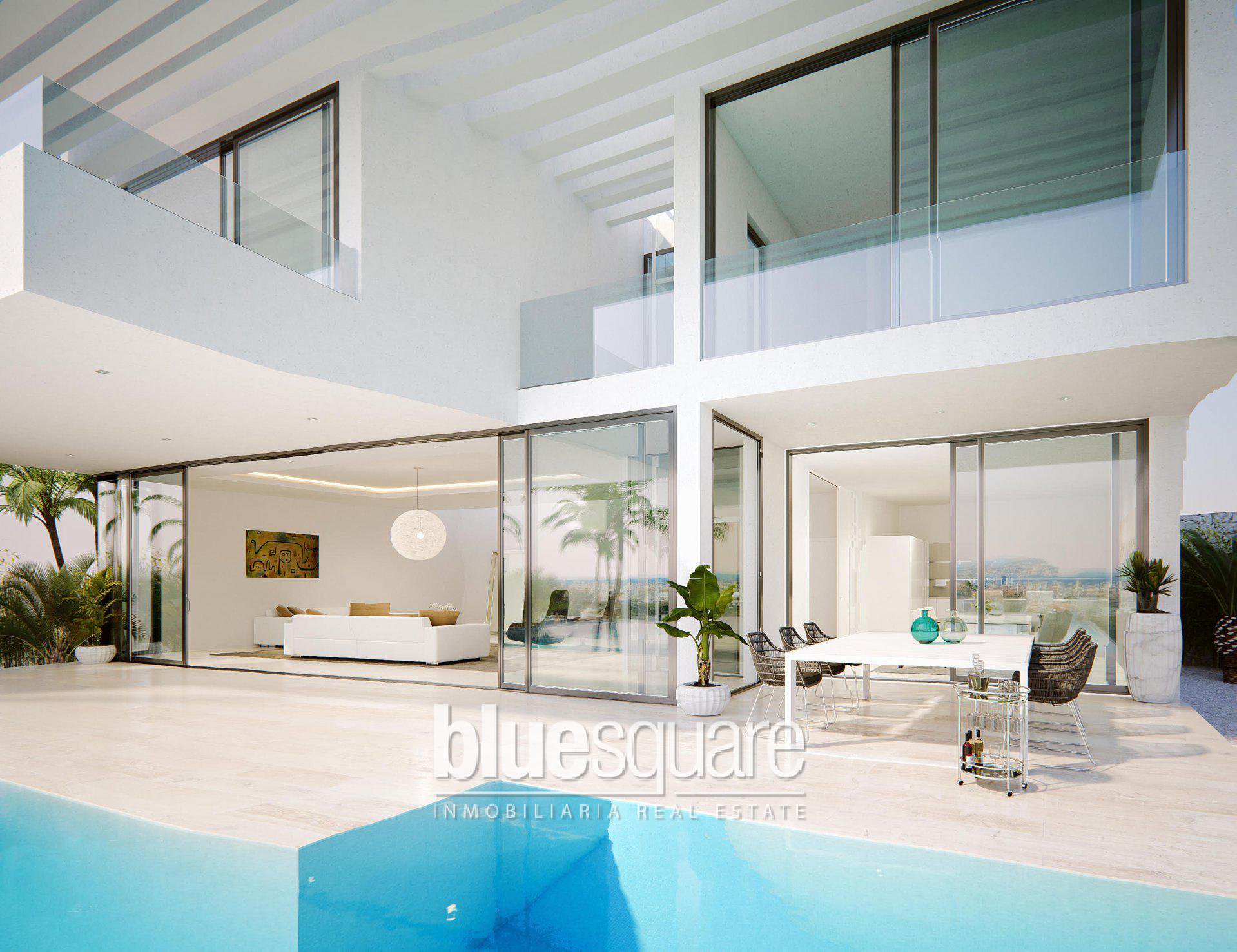 These beautiful new build villas are located in a secure urbanization just a short drive away from multiple golf courses, shops, supermarkets, bars and restaurants. They offer stunning views of the valleys as well as the Mediterranean sea. The villas have been designed in the most energy saving way, and providing the best views in every area of your home. The villa itself has 5 levels, and includes a lift. The bottom level has a large garage that can fit more than 3 cars. The first level has a basement area that can be turned into what ever suits you, including 2 extra bedrooms, bathroom, cinema room or even a gym. This area has an open glass window that looks onto the pool. The first floor includes an open plan kitchen and a spacious and airy living room which leads out onto the terrace and infinity pool. The upper level of the villa has 3 main bedrooms, with the master bedroom including its own dressing and en suite bathroom. And the top of the villa includes a solarium which provides amazing sea views.