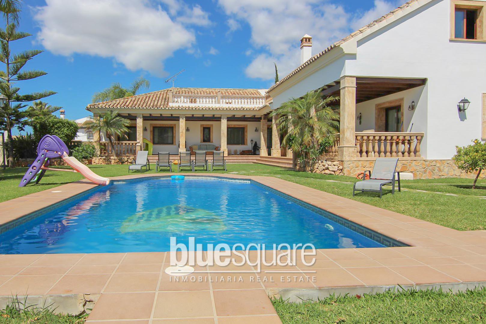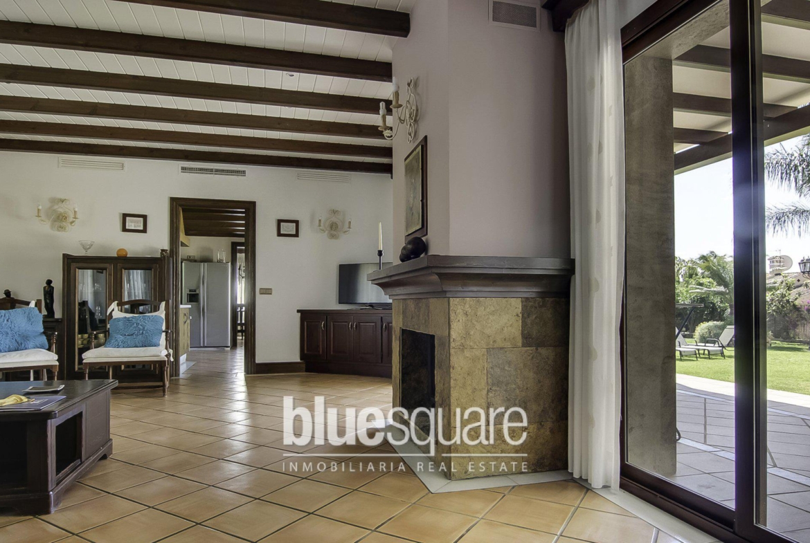 Luxury Villa in Mijas golf with a built area of 700 square meters and 1,295 square meters of plot. It has 3 double bedrooms, 2 bathrooms, living room with fireplace, wooden interior carpentry, rustic flooring, Climalit aluminum exterior carpentry. Extras: air conditioning, alarm, built-in wardrobes 1 dressing room, barbecue, air conditioning (hot / cold), fireplace, water deposit, pantry, garage 6 cars, garden, laundry, telephone line, furnished, private pool, security door, irrigation automatic, satellite, solarium, TV, storage room, video intercom. Upstairs, an en suite bedroom on the top floor with Jacuzzi, large dressing room, terraces that allow you to enjoy the tranquillity and views of Mijas Golf. On the ground floor you will find entrance, hall and staircase, facing the living room with fireplace and exit to the porch and garden, the kitchen, the separate dining room, on the right an office, hallway with three bedrooms and two bathrooms, with exit to the pool from which you will see Mijas Golf and the Sierra de Mijas.