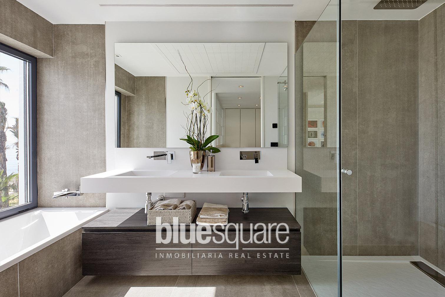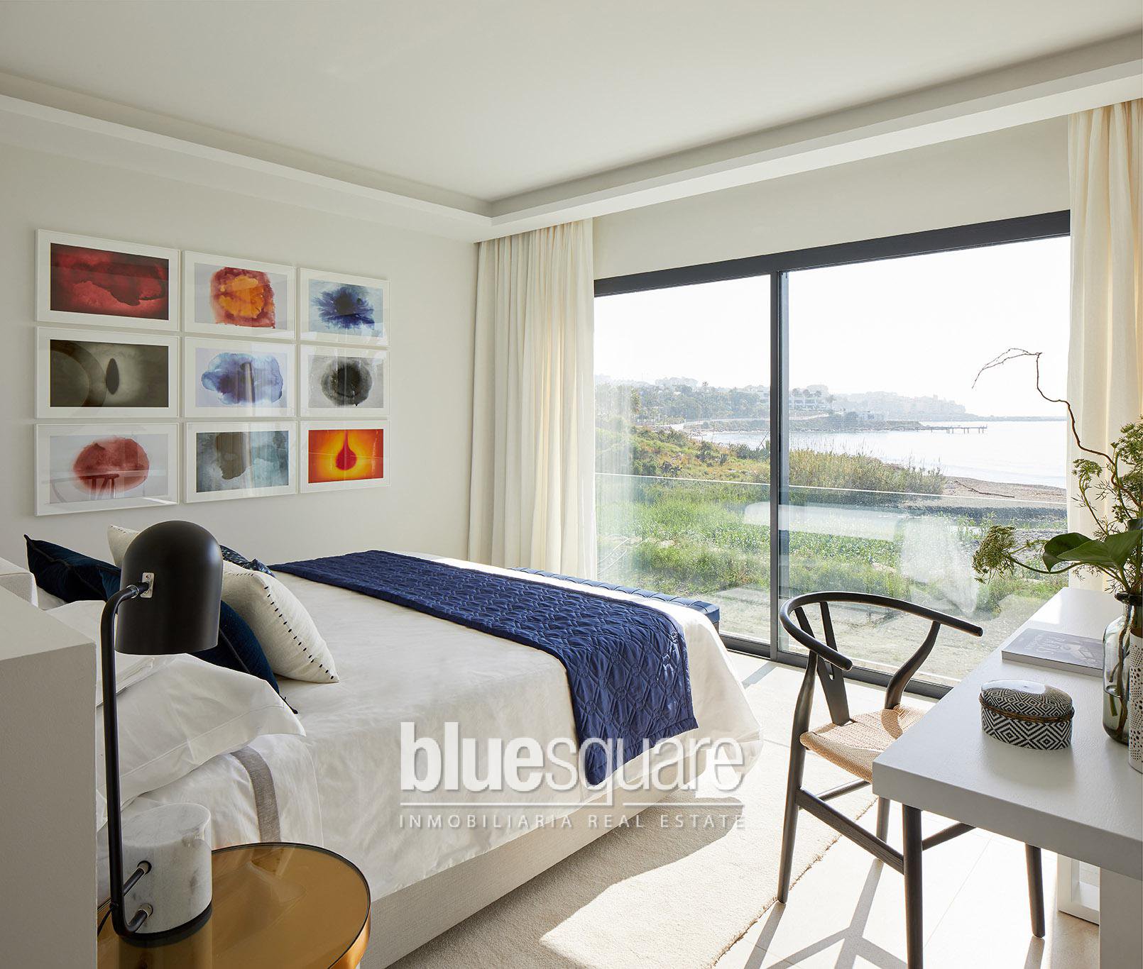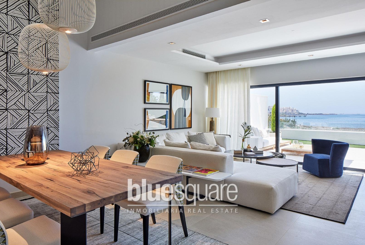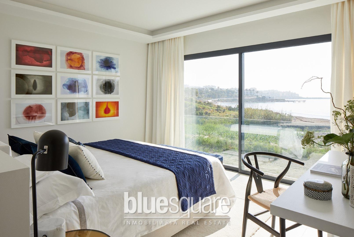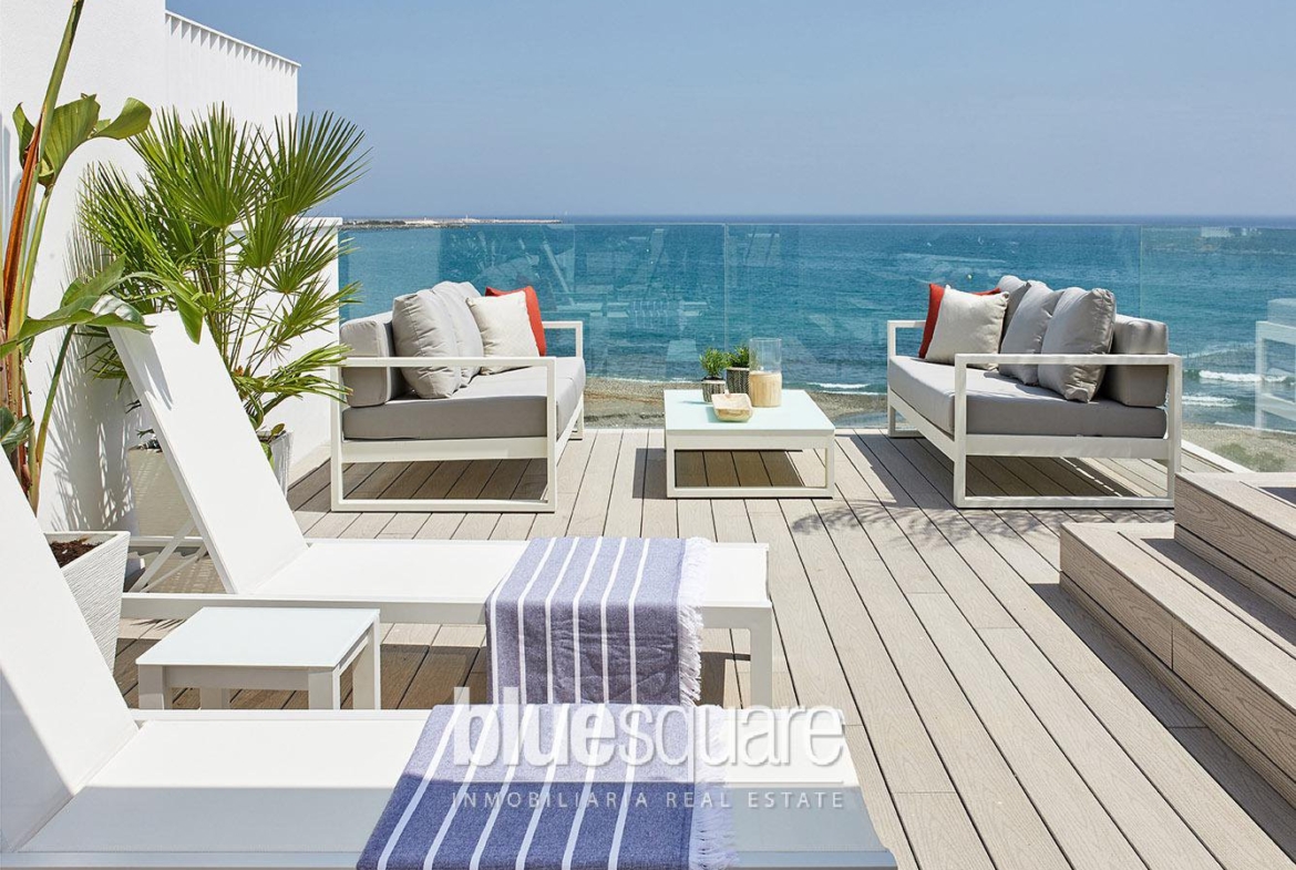 New build: Fantastic luxury development on the beachfront, in Estepona, Costa del Sol. It is located in an environment that offers absolute privacy, green areas and exclusive last generation facilities. It has luxury homes of 3, 4 and 5 bedrooms, each home has a private terrace with Jacuzzi, pergola, insulation cover and barbecue area. In addition, they have a fireplace, under floor heating system, air conditioning and home automation systems. The urbanization is only a few minutes walk from the Estepona marina, close to the town centre and very well connected to Puerto Banus, Marbella and the airports of Malaga and Gibraltar.