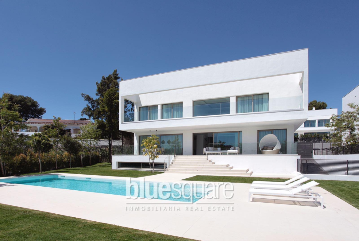 A beautiful villa in the heart of Guadalmina baja, only 700m from the sea, with an excellent view. It consists of 5 bedrooms, all ensuite, very well equipped kitchen, dining room, a private pool, 2 parking spaces, an outdoor terrace as well as a large leisure lounge. It gathers the best conditions for comfort, finishes, of the best quality of the Costa del Sol. A great opportunity to enjoy the modernity of this spectacular construction of the architecture used.