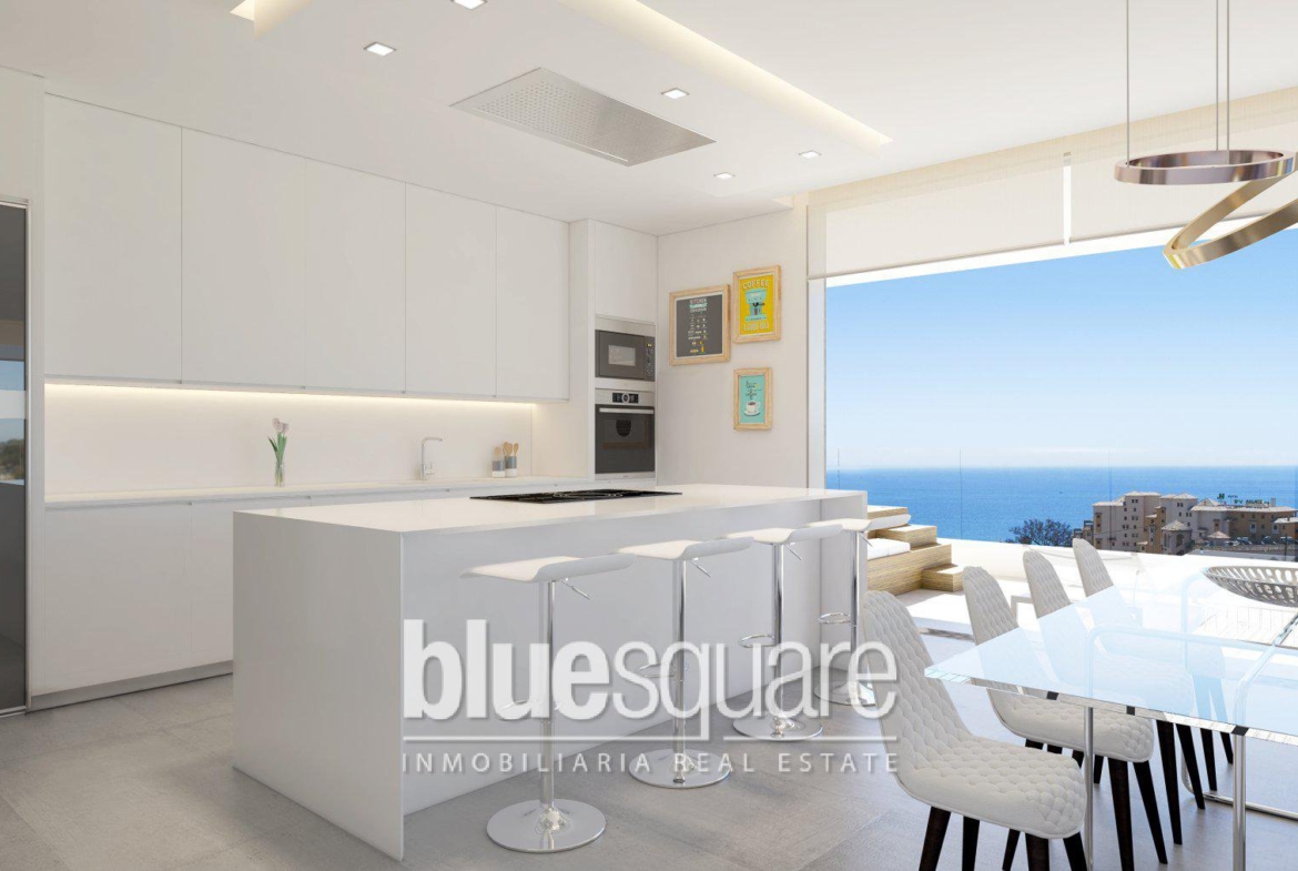New build apartments in Fuengirola, only a 5 minute walk down to the beach as well as other amenities such as the cinema, Myramar shopping centre, bars and restaurants. All apartments have amazing sea views and being in such an ideal location provides great access to everything you could need. The apartment has 2 bedrooms, 2 bathrooms, an open living area finished to a high quality standard and designed to provide ample open plan living and top of the range appliances. The apartment has been designed with a layout that gives you the possibility to enjoy exceptional views at every moment of the day whether you are relaxing on the terrace, cooking or dining. The apartment has a very high quality finish as well as features such as zone air conditioning and underfloor heating. All the apartments come with two underground parking spaces. The complex offers multiple facilities such as beautiful gardens multiple communal pools including an infinity pool and a roof top pool, a gym, Sauna, an Indoor pool for all year round swimming and Turkish baths. Which gives you an ideal space to kick back and relax. Their will be a gastrobar, with fire pits and two exclusive club house area giving you somewhere to be social with your friends when you need it all year round.
