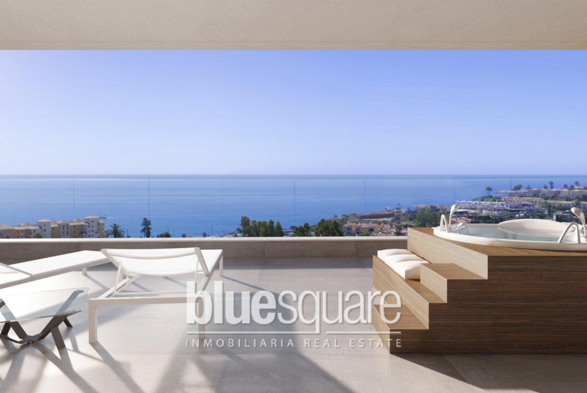 New build apartments in Fuengirola, only a 5 minute walk down to the beach as well as other amenities such as the cinema, Myramar shopping centre, bars and restaurants. All apartments have amazing sea views and being in such an ideal location provides great access to everything you could need. The apartment has 3 bedrooms, 2 bathrooms, an open living area finished to a high quality standard and designed to provide ample open plan living and top of the range appliances. The apartment has been designed with a layout that gives you the possibility to enjoy exceptional views at every moment of the day whether you are relaxing on the terrace, cooking or dining. The apartment has a very high quality finish as well as features such as zone air conditioning and underfloor heating. All the apartments come with two underground parking spaces. The complex offers multiple facilities such as beautiful gardens multiple communal pools including an infinity pool and a roof top pool, a gym, Sauna, an Indoor pool for all year round swimming and Turkish baths. Which gives you an ideal space to kick back and relax. Their will be a gastrobar, with fire pits and two exclusive club house area giving you somewhere to be social with your friends when you need it all year round.