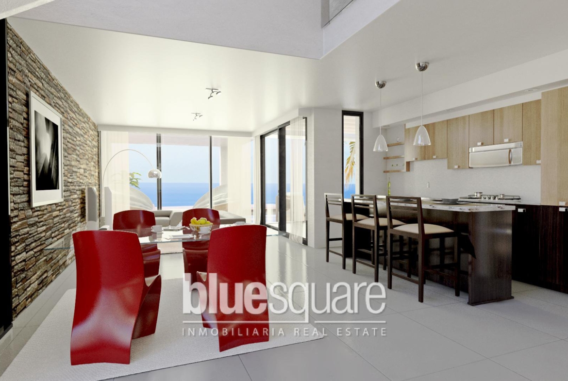 These beautifully designed new build villas are located near Mijas, just a short drive away from the beach, shops, bars and restaurants. The Villa is located in a secure gated residence that provides privacy but also easy access to everything necessary. The location gives easy access to Malaga airport in less than 15 minutes and to some of the key hubs on the coast such as Fuengirola, La Cala de Mijas and Benalmadena. The Villa has 3 bedrooms and 3 bathrooms, with the master bedroom including an ensuite bathroom and it’s own dressing. Both bedrooms on the upper floor have private access to their owns terraces. On the lower level, their is an additional bedroom, as well as the large open kitchen living area which provides maximum light and space into the villa. The opening onto the terrace with the floor to ceiling doors provide the most light possible into the villa meaning you can make the most of the sun all day all year round. Each villa comes with a privates pool, gardens as well as a parking for up to two cars.