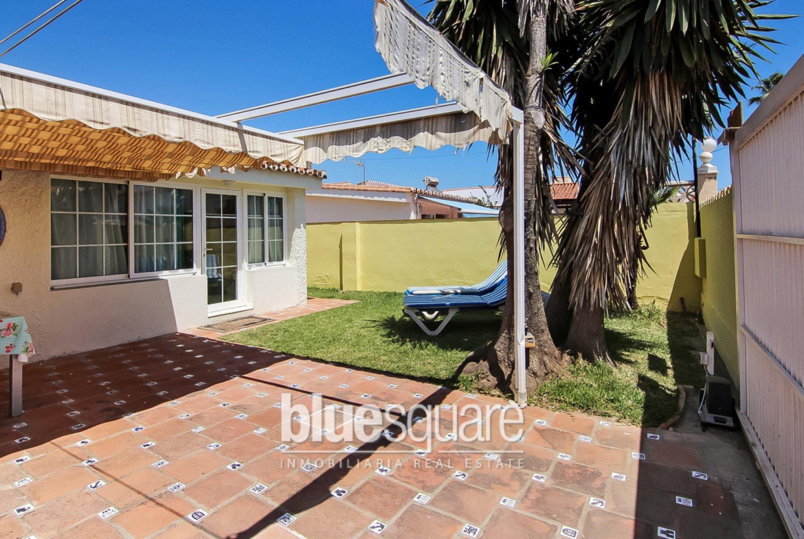 Pretty little Andalusian style beach house 20 meters from the sea in Elviria, in the municipality of Marbella. It consists of 3 bedrooms and 2 small bathrooms, a large living room with an open plan kitchen, a terrace at the front and one at the back of the house. A small garden surrounds the house with a pleasant south facing terrace. The house is in a quiet street, a few meters from one of the most beautiful beaches on the coast, in Elviria. It is close to the beach restaurants, the beach club of the Vinci hotel with its spa and facilities. The Elviria shopping centre, supermarkets, restaurants are a 2-minute drive away and Marbella town centre is only 8 minutes away. It is an ideal home for holidays close to the beach.