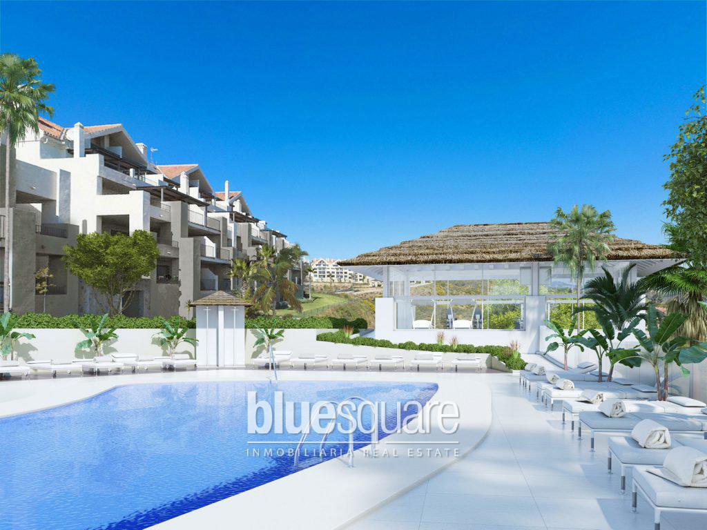 It is a two bedrooms apartment, new and modern contemporary Mediterranean style at Mijas Costa. It has a very bright living room, a large terrace with superb and “breathtaking” panoramic views, on the golf course, the sea and the snowy mountains of Sierra Nevada in the distance. The fully equipped kitchen is modern as well as the bathroom. An underground parking space and a storeroom are also included. In addition, the residence has a beautiful garden, three swimming pools, a sauna, a jacuzzi and a gym. In one of the pools a bar is open during the high season. The residence is located between the mountains and the sea, overlooking the beautiful Calanova golf course. It is located 5 minutes drive from the pretty town of La Cala with all its restaurants, shops and beautiful beaches. It is a superb place to spend holidays or to live all year round.