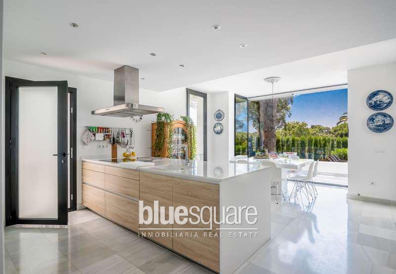 This fabulous villa is located in Las Chapas in the municipality of Marbella. It was built 2 years ago with using high end modern materials. The villa consists of the ground floor and split upper floor. On the ground floor there is a large living room with a fireplace and a huge bay window overlooking a large covered south facing terrace. There is a large modern independent kitchen equipped with the brand “Neff”, the south face has glazed windows(with glasses that retain heat) giving the impression of being on the terrace. There is also a laundry room, 2 bedrooms and 2 bathrooms. On the upper floor there is a large en suite bedroom suite and dressing room which has a bay window overlooking the terrace. There is another large en suite bedroom on the same floor. The villa has a garden with a 50m pool, a well, wood oven, and a courtyard with car shelter. The hot water comes from solar panels and there is the possibility of conditioning the pool also by solar panels. The windows are made of “Technal” aluminum with high security glass, the bathrooms equipped with “Laufen” furniture, the wardrobes from “Serigno” and the floors are covered with white “Macael” marble. The villa is extremely secure, there is an indoor and outdoor alarm system, security doors and a laser barrier on the perimeter that overlooks a wooded area. The villa is located in a residential and wooded area in Las Chapas, just a 2 minute drive from the beach and 2 minutes from the commercial center of Elviria and 10 minutes from the city center of Marbella.