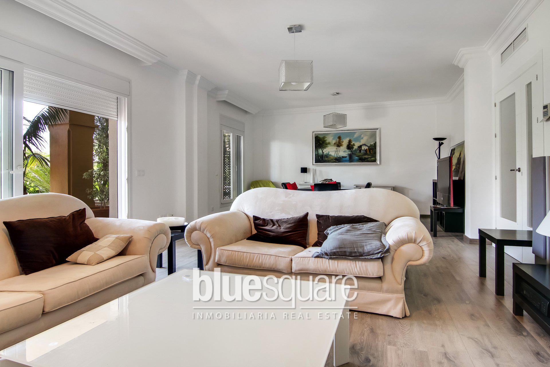 Beautiful semi – detached house on the golf course of Santa Maria Golf in Marbella in one of the most exclusive urbanization of Marbella. This beautiful house has two floors : – on the ground floor there is a very large living room with a fireplace and a bay window overlooking the terrace,a modern independent kitchen, a corridor and a bathroom with shower. – Upstairs there are two bedrooms,bedrooms,both en suite, then a master bedroom suite with a large dressing room and a very modern bathroom. It overlooks a terrace which has a superb view of the golf course, the mountains, the sea and the bay of Marbella. The lower terrace is on two levels and surrounded by lush vegetation. At the entrance there is a covered parking space. The house was completely renovated two years ago. There are two community pools with gardens. The urbanization is one of the most secure of Marbella, there is a barrier with a guard at the entrance and another guard at the entrance of the residence. The house is located one kilometer from the beach of Monteros and a few minutes from the center of Marbella.