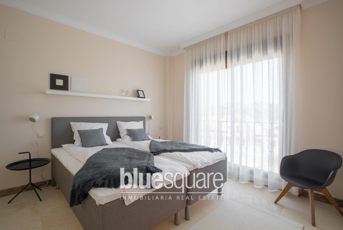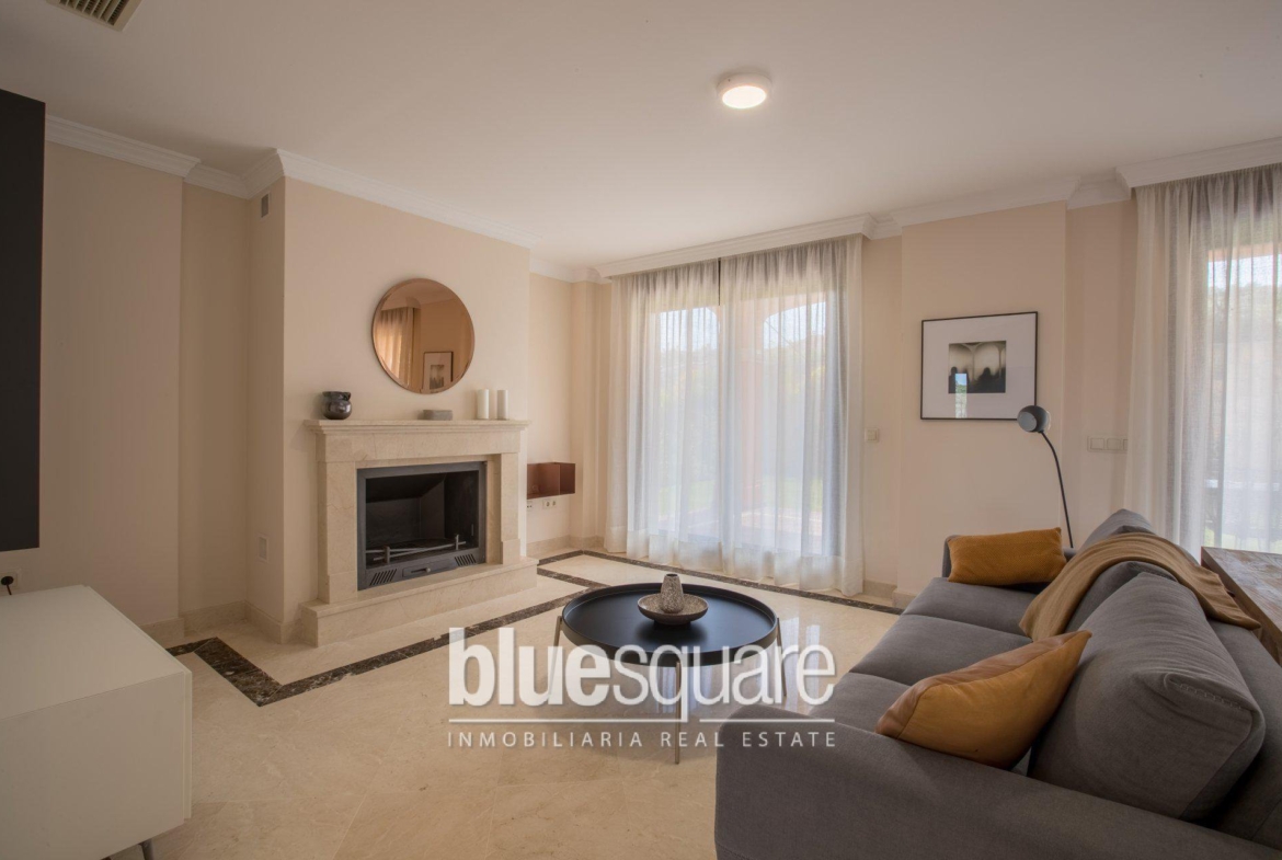 NEW BUILD Luxurious front line golf townhouse in a private gated community with spectacular mountains views. This beautifully designed and elegant townhouse offers complete Mediteranean living and lifestyle. With 4 very spacious bedrooms and 4 bathrooms, including a Jacuzzi bath. The basement area is of extensive size and could be developed in to a small independent apartment, an office, a gymnasium, a cinema or games room. Additional extras: Air-conditioning (hot/cold), fire place, electric blinds, video intercom system, electric gate, pre-installed alarm system. Multiple terraced areas with fantastic golf, sea and mountains views and lateral and front garden areas. Allocated license to build a swimming pool (7x3m). Situated at 8 minutes from Estepona town centre, 16 minutes of Puerto Banus, 20 minutes of Marbella and 50 minutes of Malaga Airport.